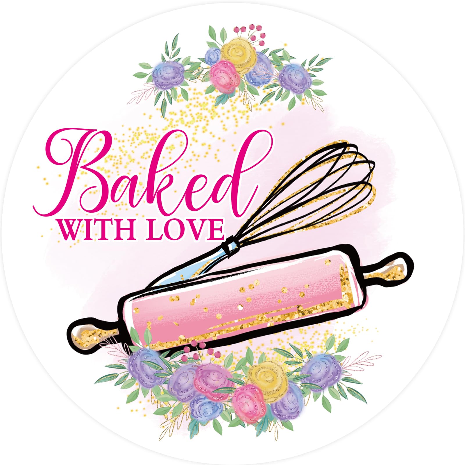 WorldBazaar Baked with Love Stickers 500pcs Floral Homemade with Love Stickers Baked Cookies Goods Packing and Wrapping Labels Business Birthday