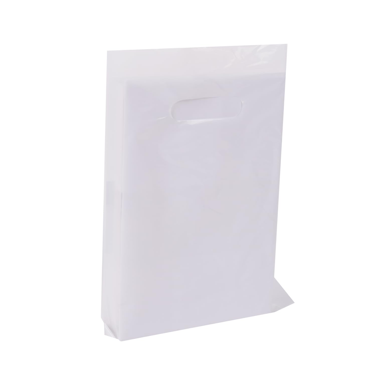 ysmile Plastic Shopping Bag with Handle Poly Die Cut Plastic Merchandise Bag for Retail Small Business 7.8"x11.8" 100 ct - White