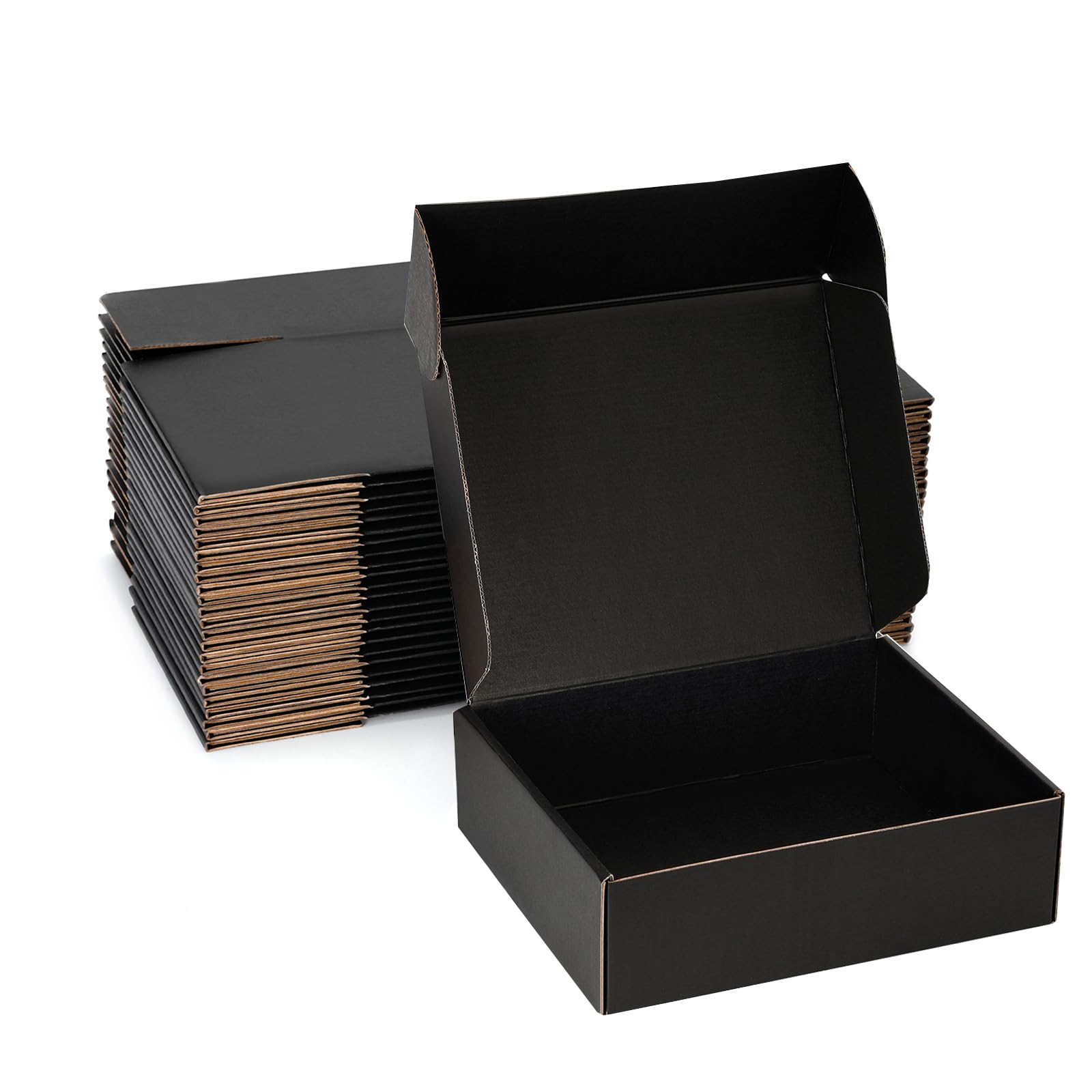 DUZCLI Small Shipping Boxes 8x5x2 Inch (25 Pack) - Sturdy Black Corrugated Cardboard Boxes for Small Business, Ecommerce, Mailing & Packaging |