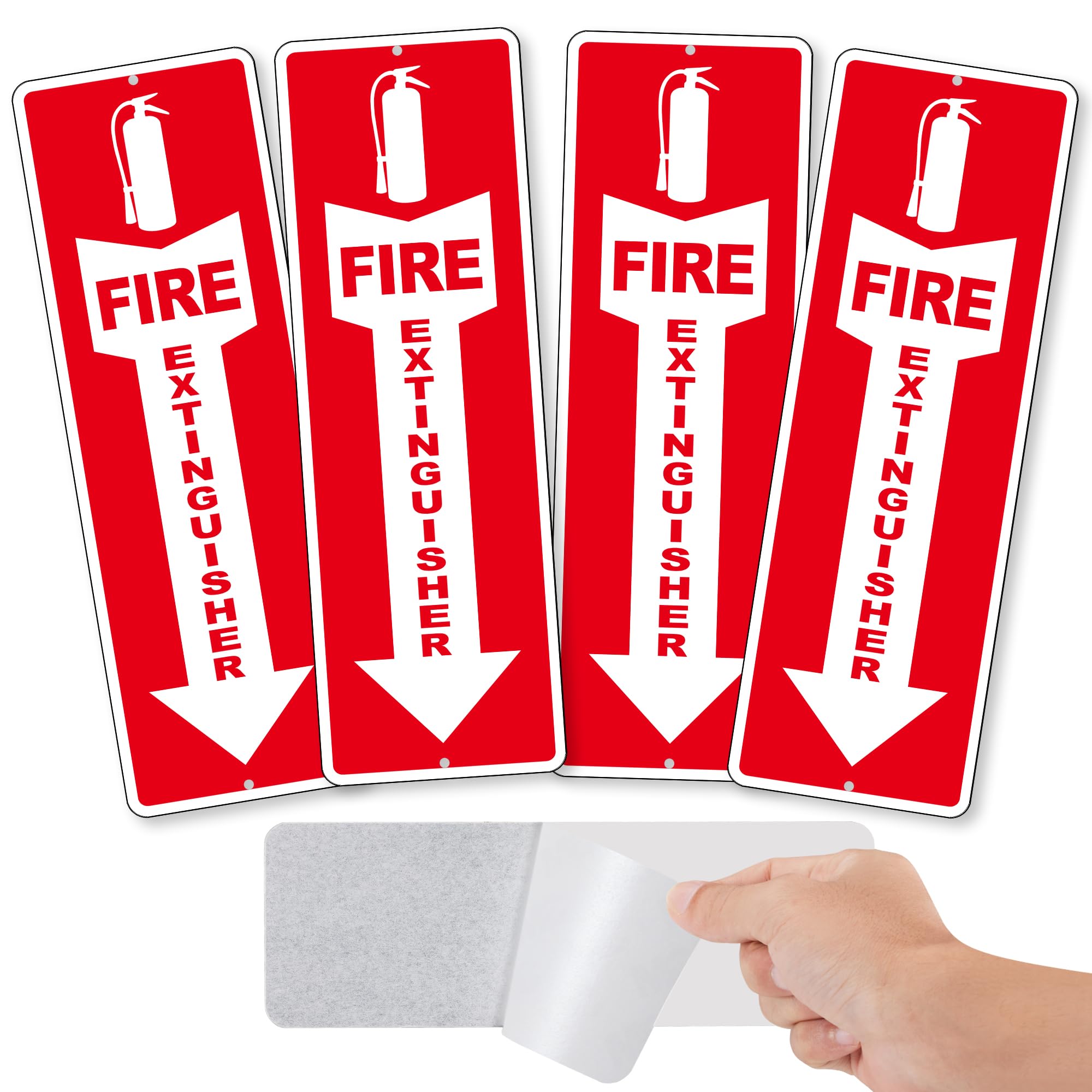 (4 Pack) Fire Extinguisher Signs – Strong Self Adhesive Fire Extinguisher Sign for Business, 12x4 Inch Aluminum Fire Extinguisher Signs Weather