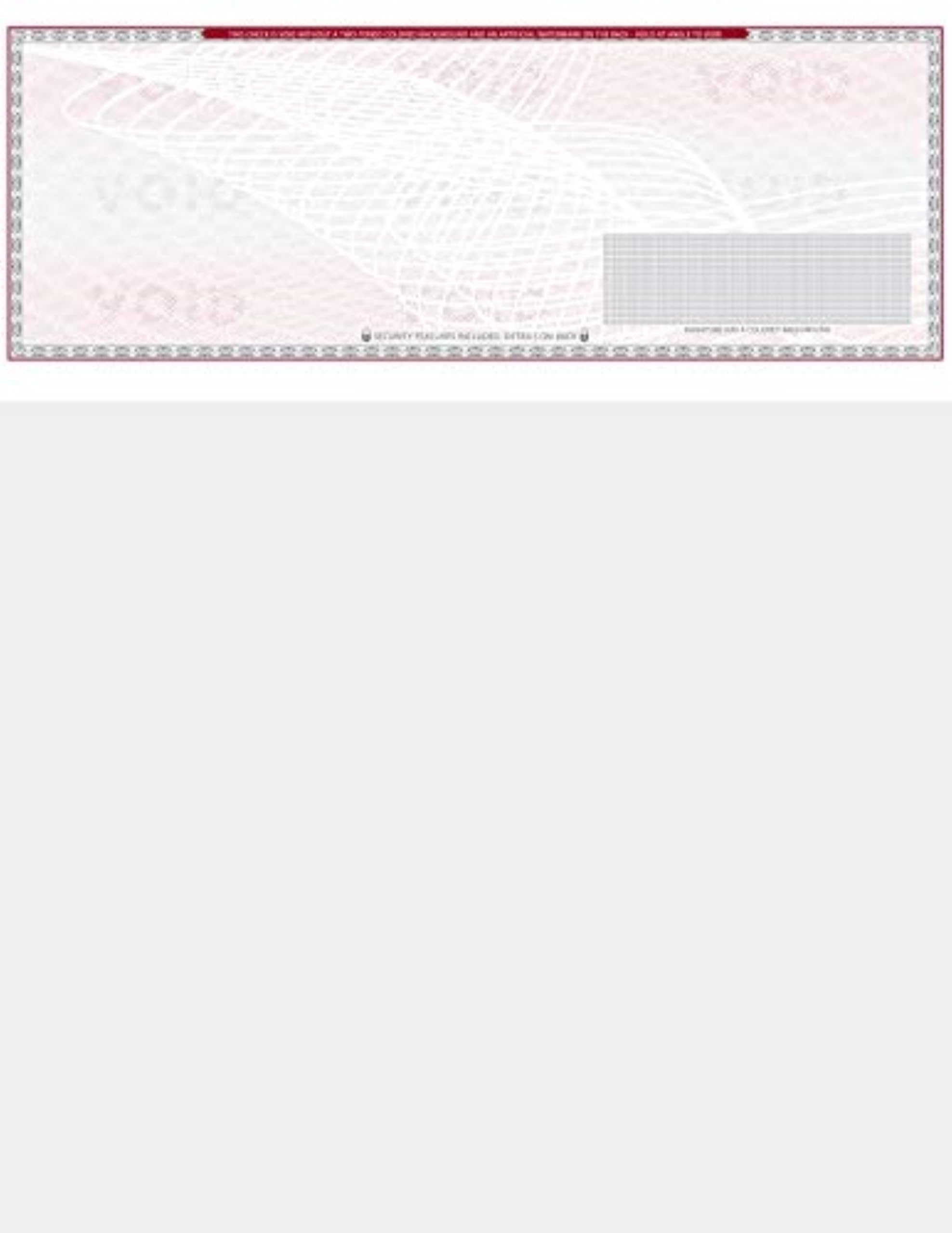 100 Blank Check Stock - Check on Top Art Deco- Paper Weight # 70"High Security" Check Paper Grey/Red Art Deco