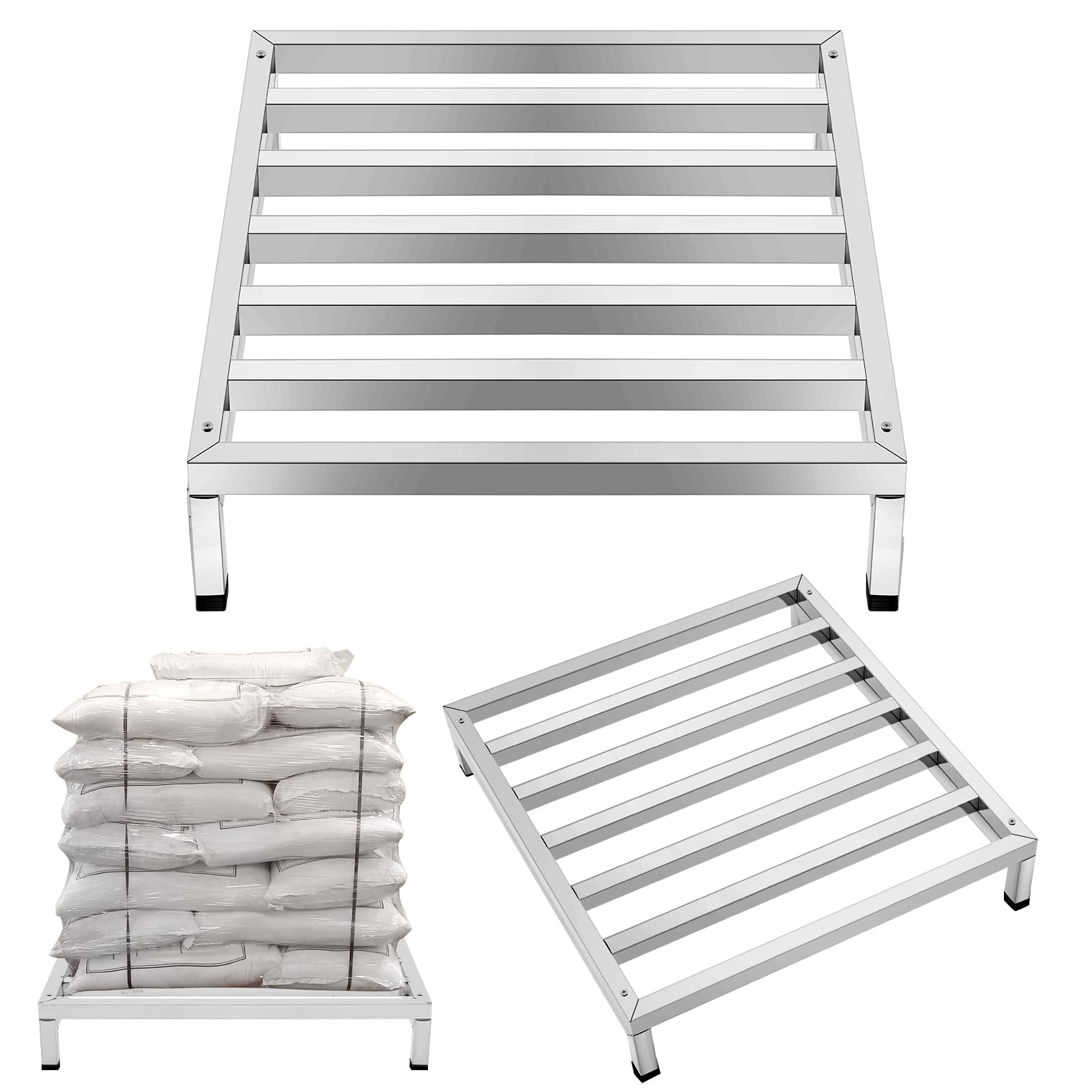 MorningRo 2 Pack Dunnage Rack 23.6" Long x 23.6" Wide, 3.9" Height Stainless Steel Shelf 1000+ Pound Capacity Commercial Food Floor Rack for