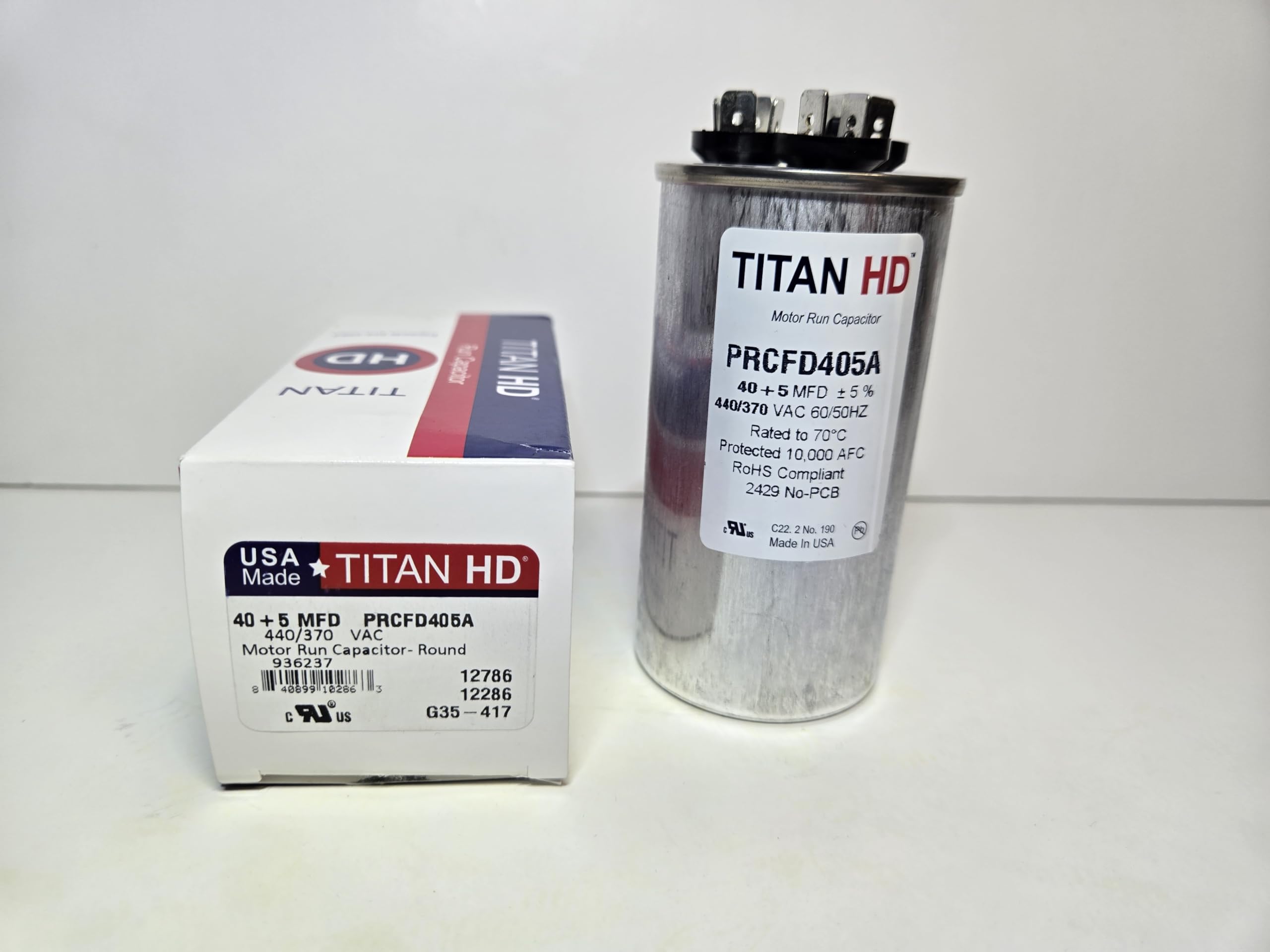 Titan HD PRCFD405A 40/5 MFD 40 + 5 440/370 American Made Dual Run Capacitor HVAC A/C Central AIR Conditioner Packard
