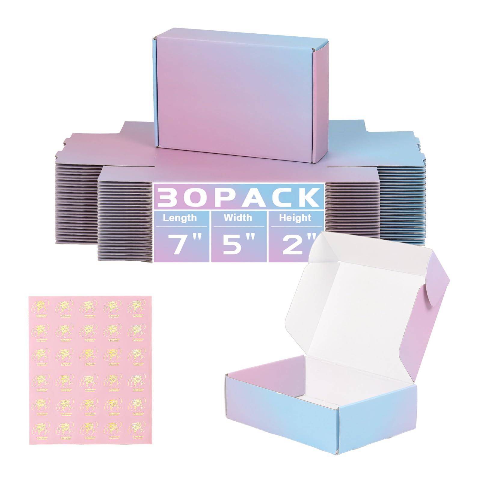 DERZIFUN Purple Shipping Boxes for Small Business, 30 Pack 7x5x2 Inch Small Cardboard Boxes, Recyclable Corrugated Boxes for Online Business, Mailer,