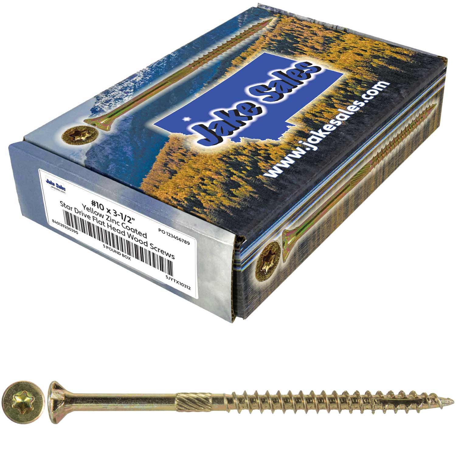 Jake Sales #10 x 3-1/2" Gold Star Wood Screw Torx/Star Drive Flat Head (5 POUNDS - 270 Approx. Screw Count) - Multipurpose Wood Screws