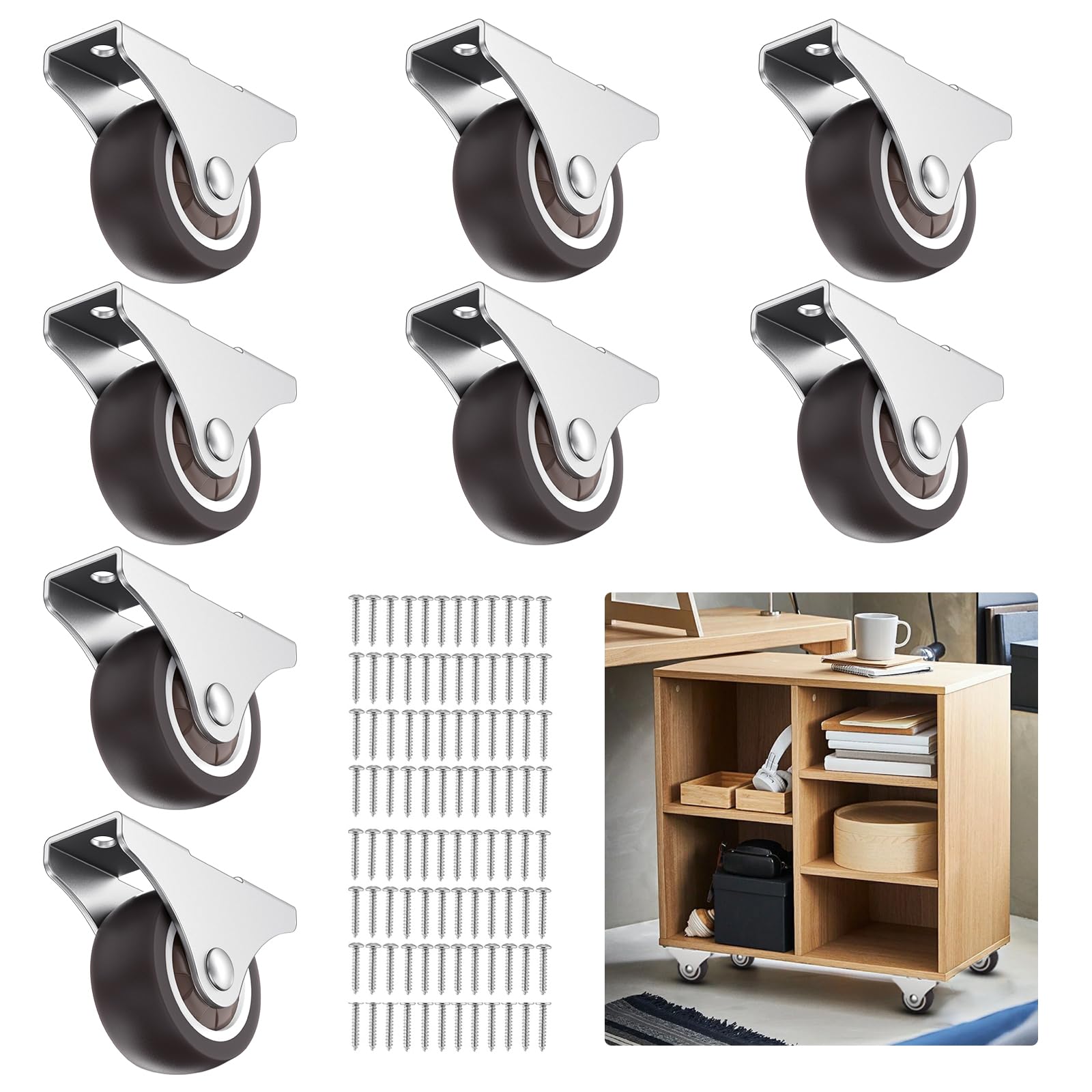 【Multiple Sizes】Mini Casters Available in four sizes (1”, 1.25”, 1.5”, 2”) to suit various needs, with options for packs of 4 or 8, please purchase according to the required height of the furniture 【Durable and Quiet】 Made from Thermoplastic Rubber (TPR), these low profile caster whe