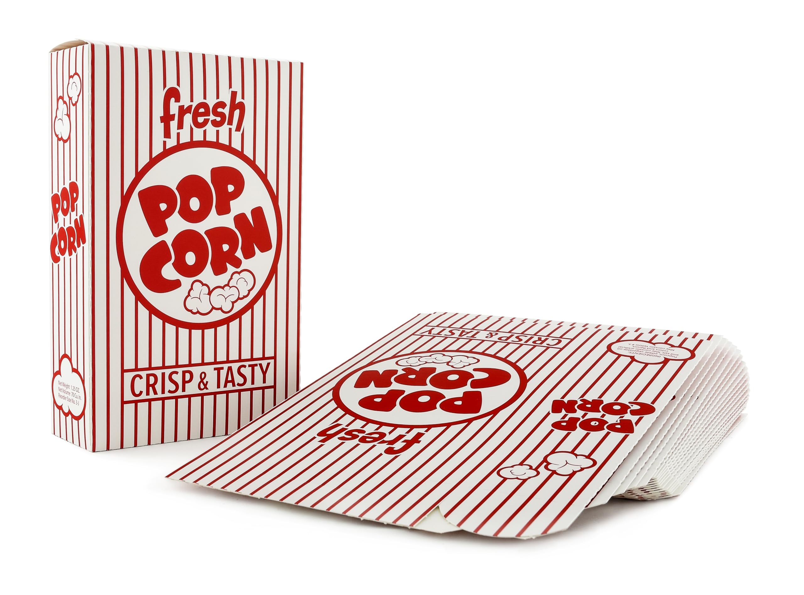 Snappy 3J Red & White Striped Close Top Popcorn Boxes for Movie Night Supplies, Popcorn Boxes Bulk 25 Count, Movie Night Popcorn Boxes 1.25 oz.