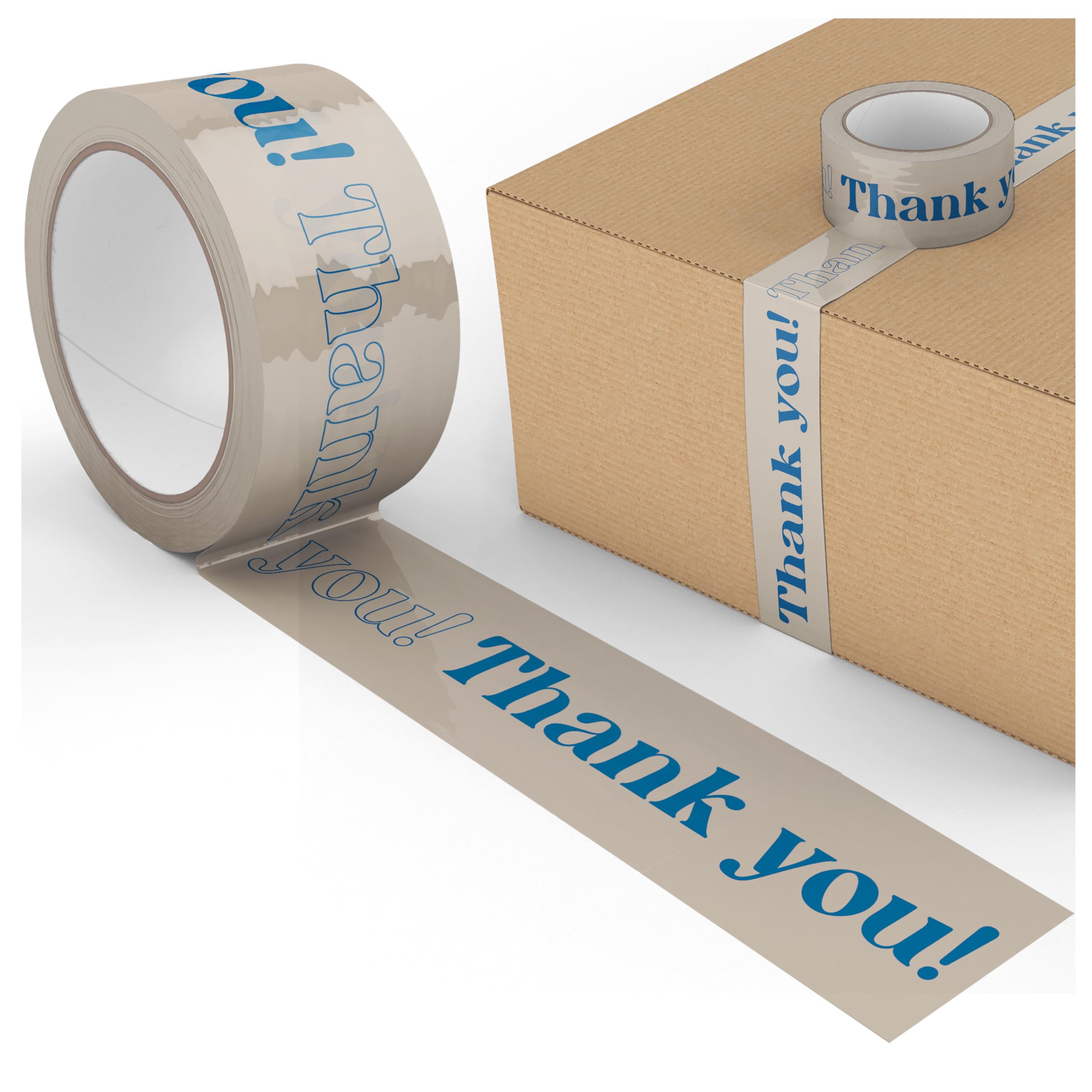 Thank You! Designer Decorative Packing Tape for Small Business Cute and Colorful Printed Packaging and Shipping Tape - Cream/Blue, 1.88" x 110 Yards (