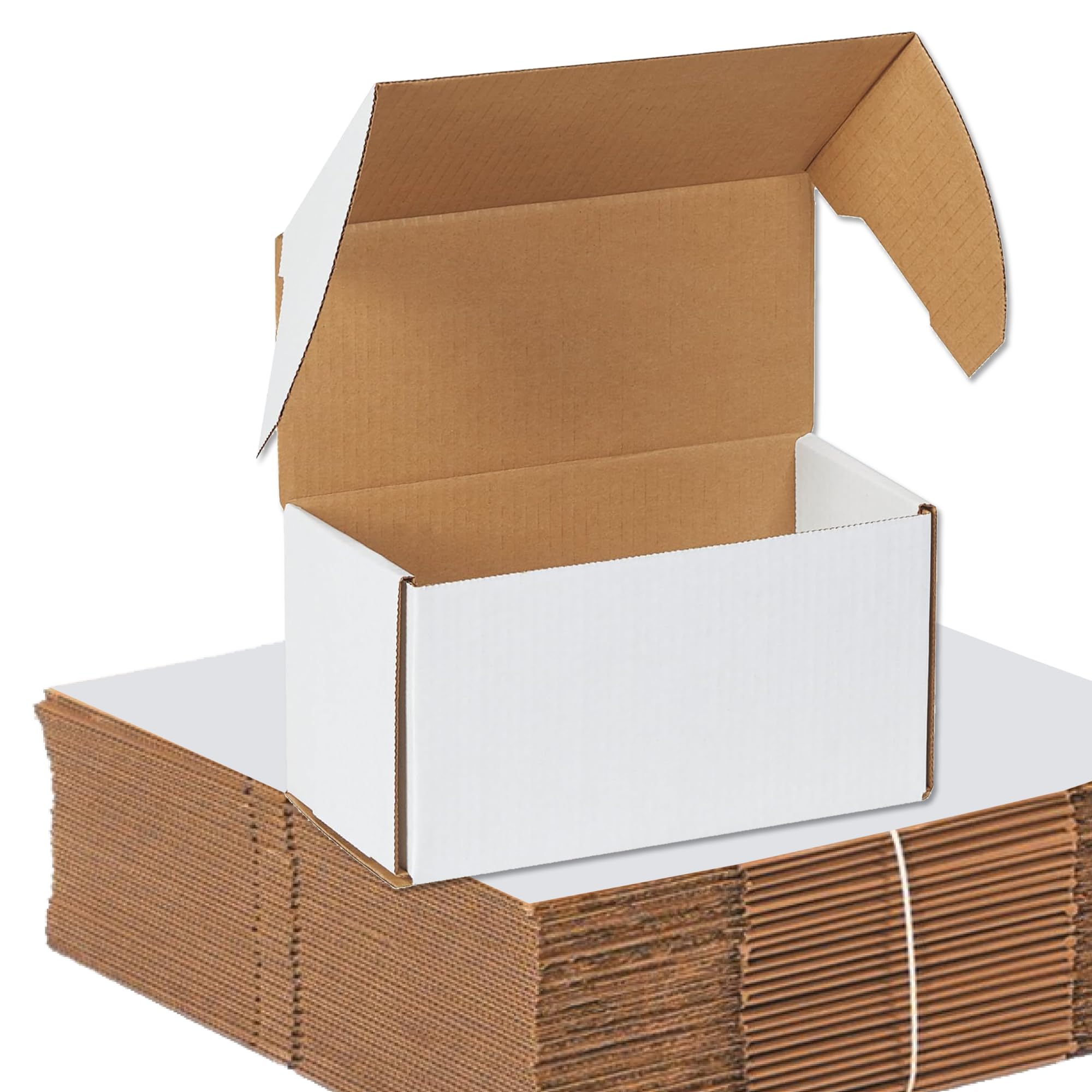 Box USA 10" Deluxe Shipping Boxes, 10 1/2"L x 5"W x 6"H, 50-Pack - White Box Mailers for Packaging, Storage, Gifts or Bulk Business Orders