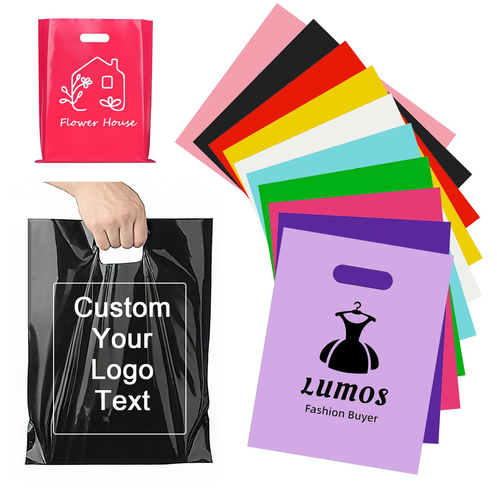 ZEXUPER [100] Custom Logo Plastic Gift Bags – Personalized Handled Plastic Bags, Ideal for Small Businesses, Clothing Stores & Supermarkets | Premium