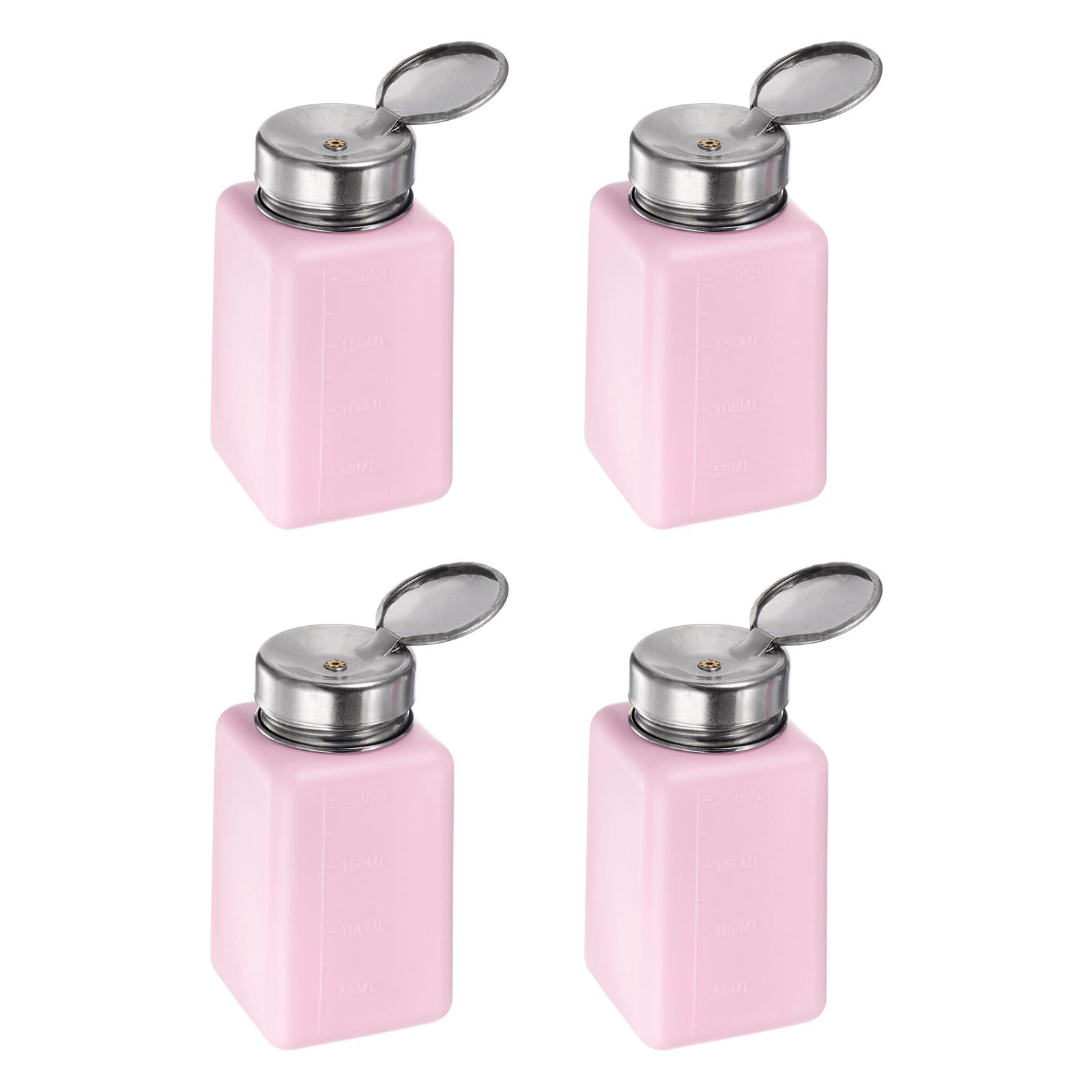 HARFINGTON 4PCS 200ML(6.8oz) Push Down Alcohol Dispenser Pump Liquid Press Empty Bottles Refillable Container for Acetone Cleanser Nail Polish Remover