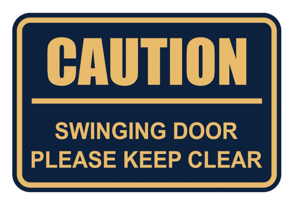 Signs ByLITA Classic Framed Caution Swinging Door Please Keep Clear Sign (Navy Blue/Gold) - Medium