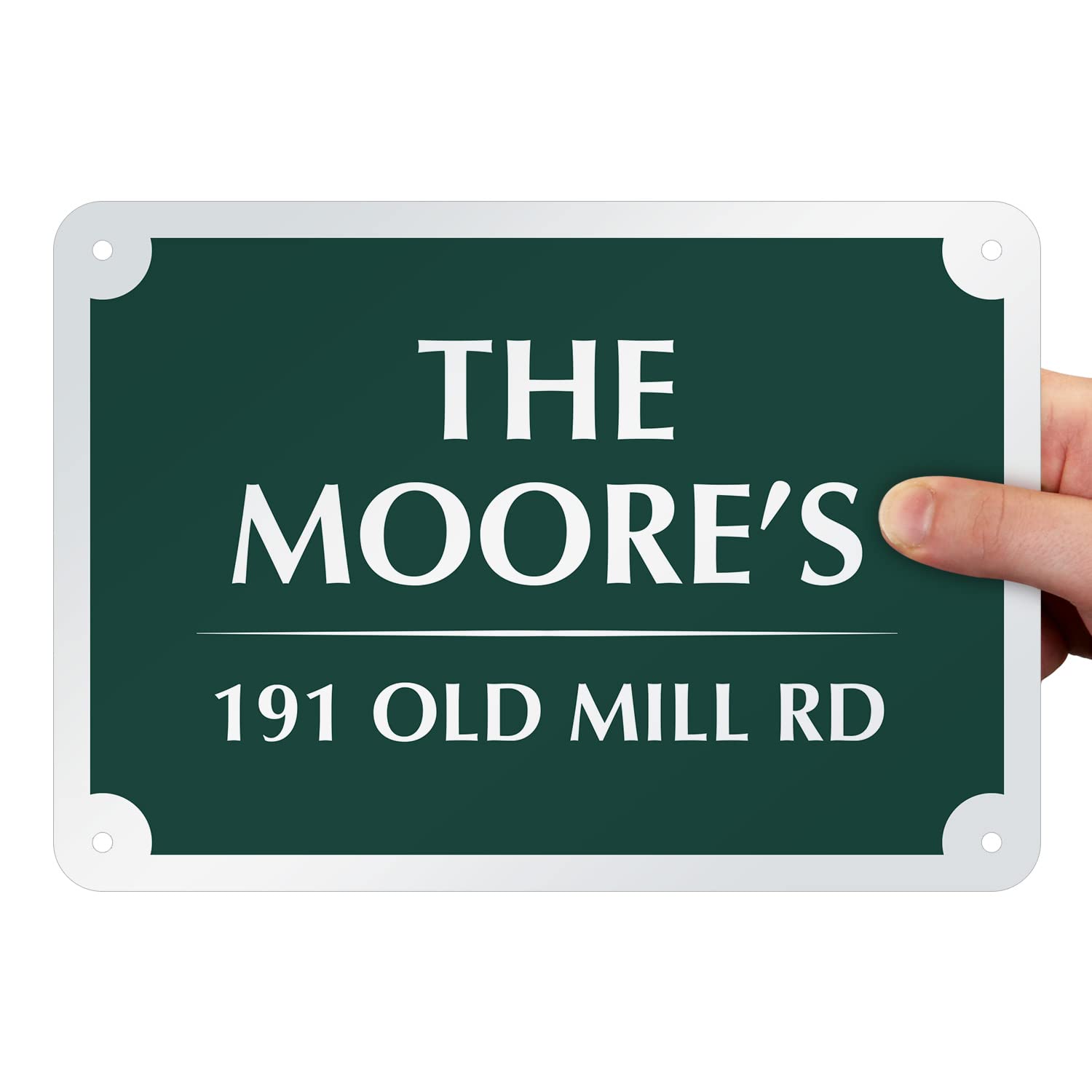 DURABLE ALUMINUM: Personalized Home Address signs are made from heavy-duty 40 mil thick aluminum. Unlike steel signs, our aluminum signs do not rust. Metal signs easily last up to 7 years outdoors. EASY INSTALLATION: Signs have four 3/16 inch corner holes. Mount with screws, nails, tie-wraps or wire