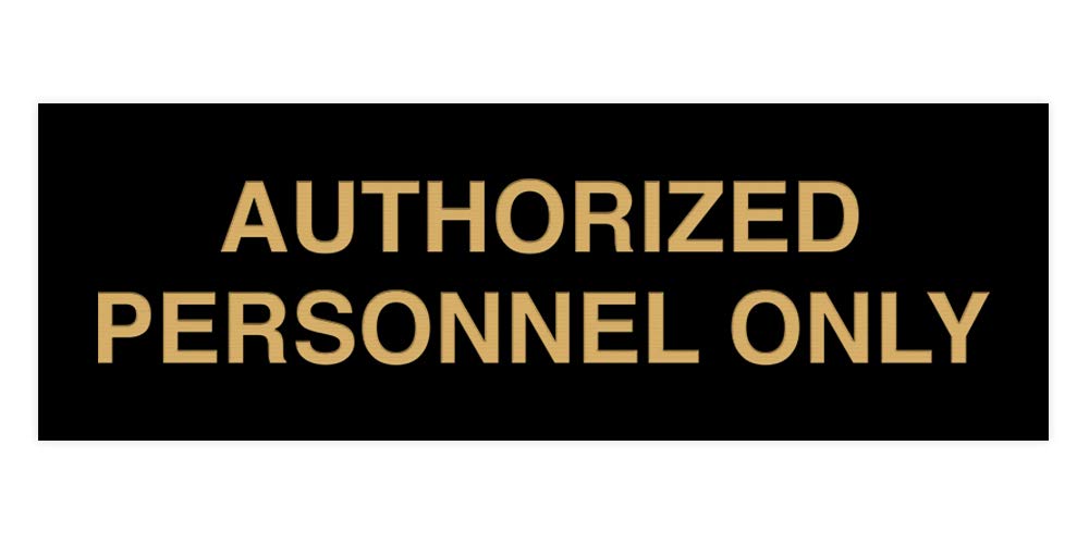 Beautifully designed Signs ByLITA Basic Authorized Personnel Only Sign for your home, office, business or school. Dimensions: 4.5"H X 9" W Premium Lasered Engraved Plastic Sign includes, optional, strong foam double sided adhesive tape for mounting on most surfaces. Perfect sign for your home, offic