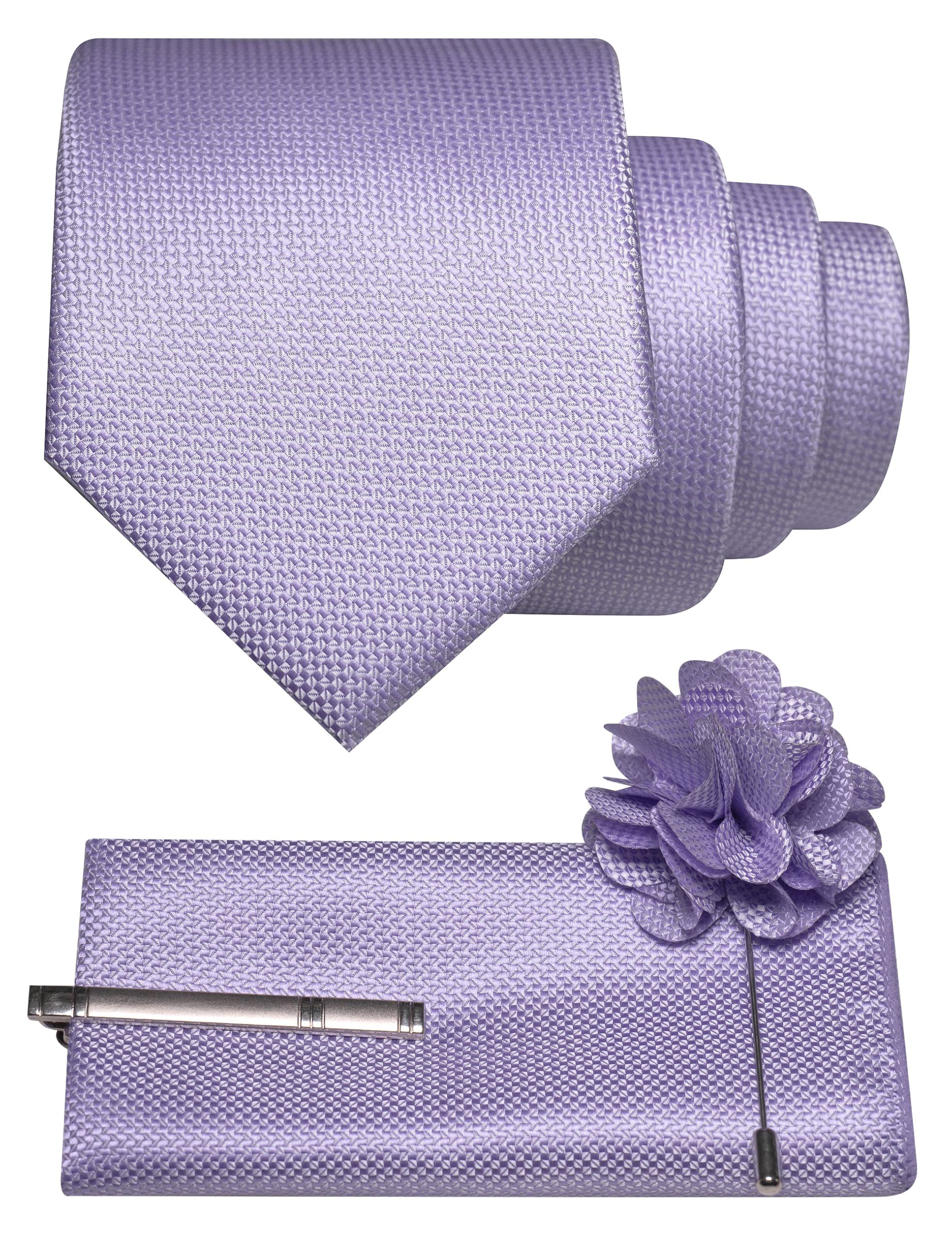 4PCS Tie Set Including:Necktie+Pocket Square+Lapel Pin+Tie Clip.Neck Tie Size:3.15 inches (8cm) wide and 58 inches(148cm) long; Pocket Square:9.85*9.85 inches (25*25cm);Tie Clip: 2.36inches(6cm);Lapel Pin:3.35inches(8.5cm) Classic and Stylish: ties are a must-have accessory for men's clothing, simpl