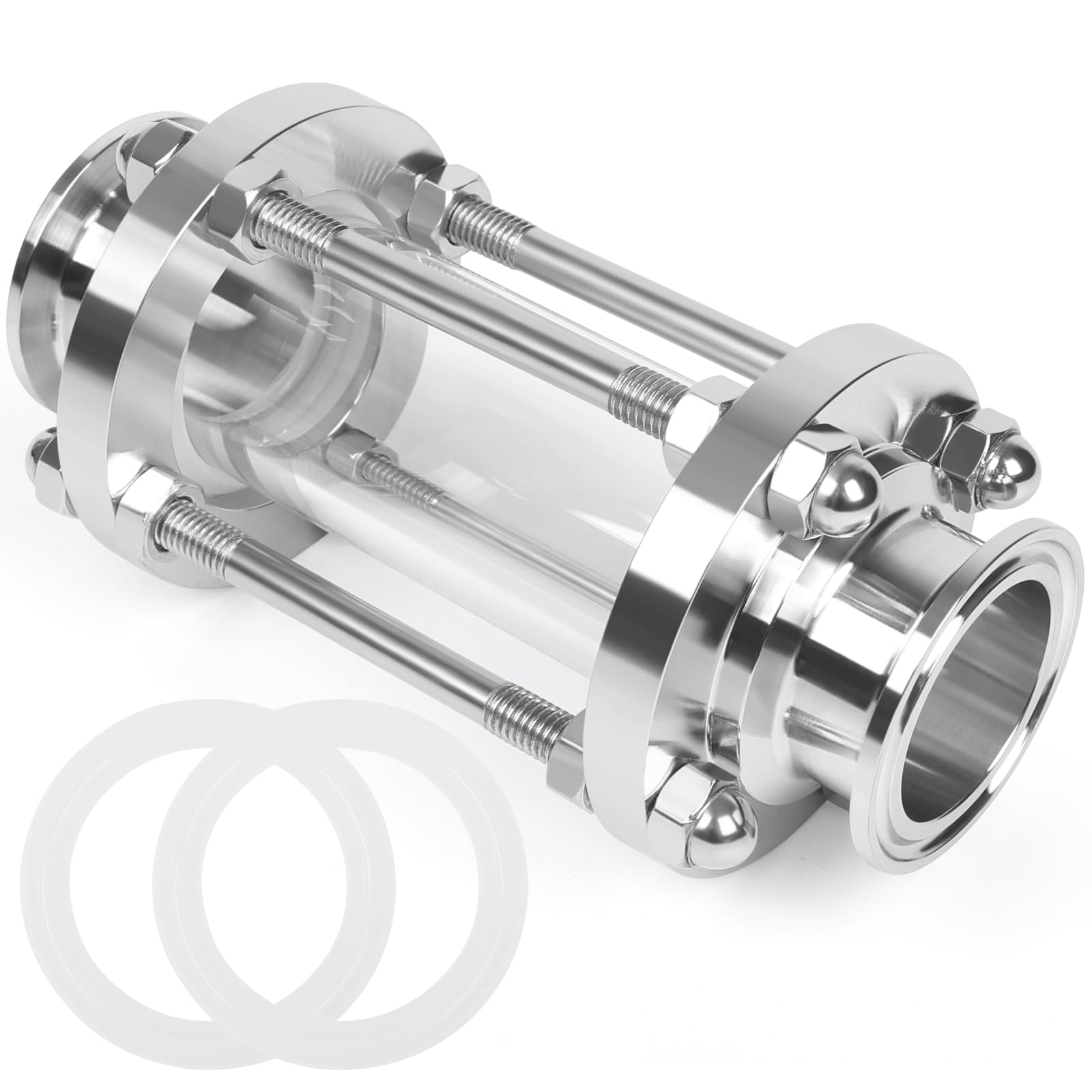 JMCOLMT In-Line Sight Glass 1.5" Tri Clamp Flow Sanitary Straight Sight Glass Flow Pipe OD 38mm Stainless Steel Tri Clamp Type