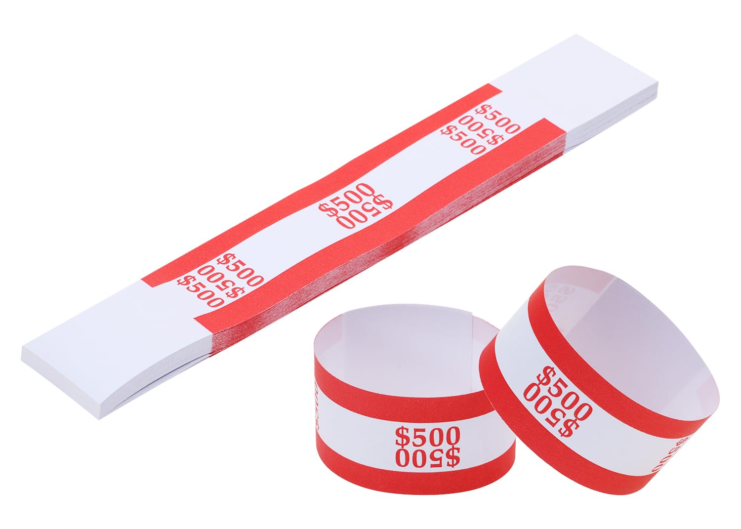 ONLYKXY $500 Self Sealing Cash Currency Straps Money Paper Bands Bill Wrappers Tape for Bank Supermarket Currency Organize Cash Dollar Wraps Organizer