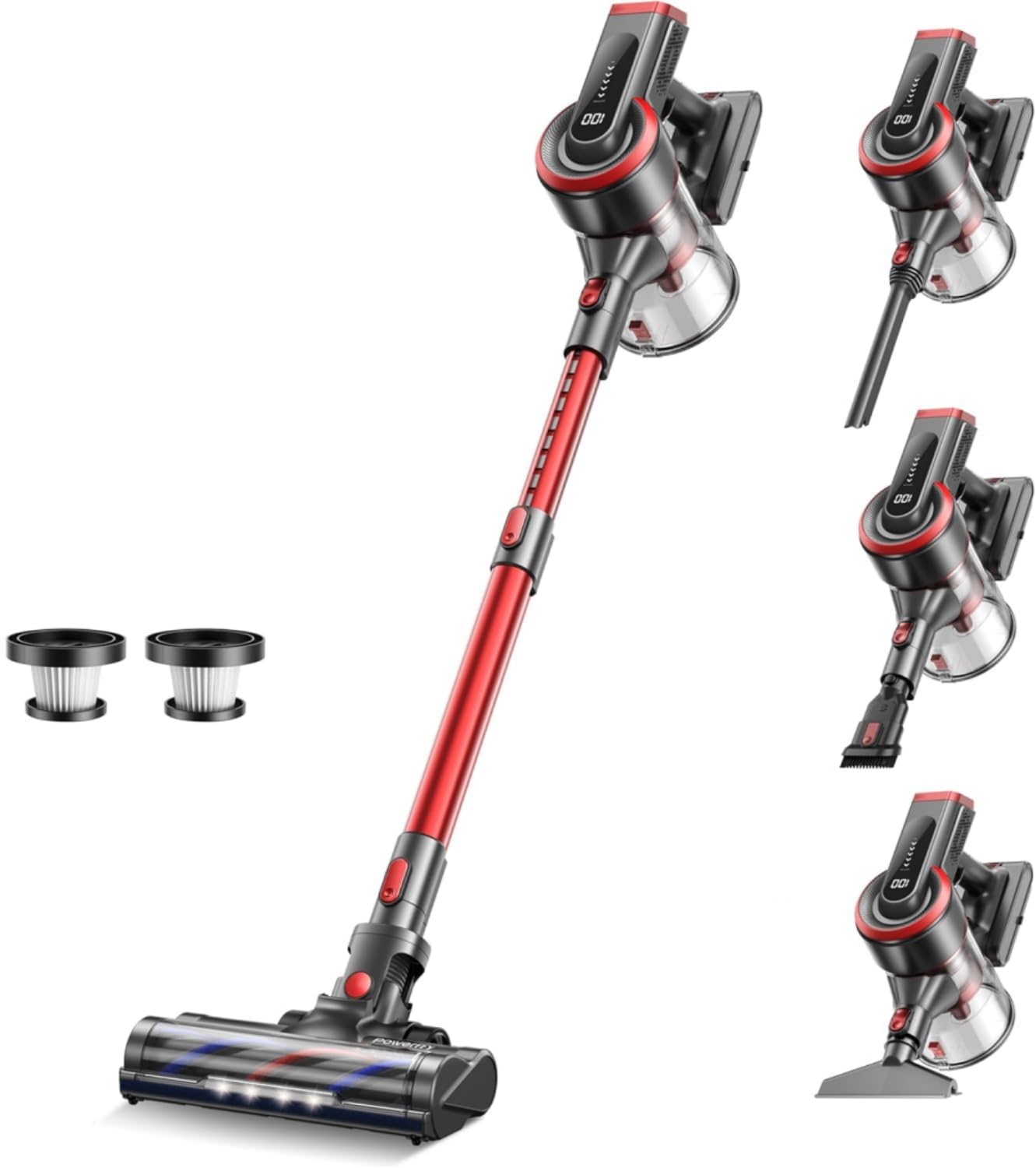 Powerffy Cordless Vacuum Cleaner, Stick Cordless Vacuum with LED Touch Screen, Anti-Tangle Vacuum Cleaner with Charging Station for Carpet Hard Floor