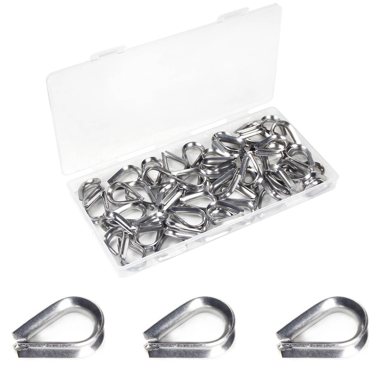 Yinpecly 50 Pcs 5/32" Wire Rope Thimbles M4 Cable Thimbles 304 Stainless Steel Thimble Rigging for 5/32 Inch Diameter Wire Rope Cable Thimbles Rigging