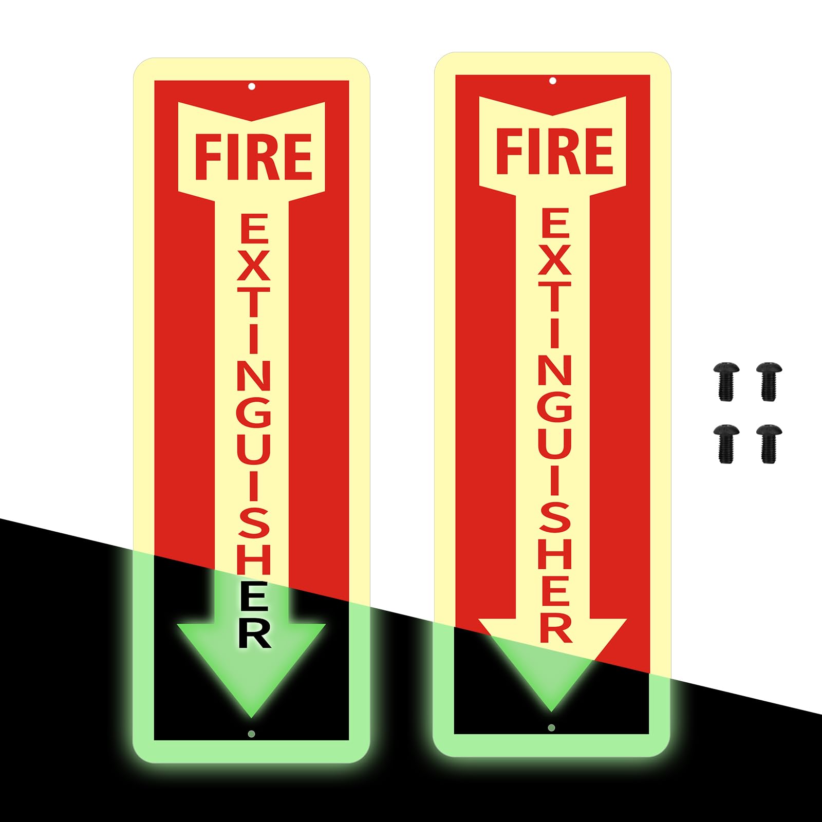 Ayifan Fire Extinguisher Sign,2 Pack Reflective Fire Extinguisher Signs for Business,4 x12 Inch Aluminum Metal Safety Signs,Glow in the Dark,Weather