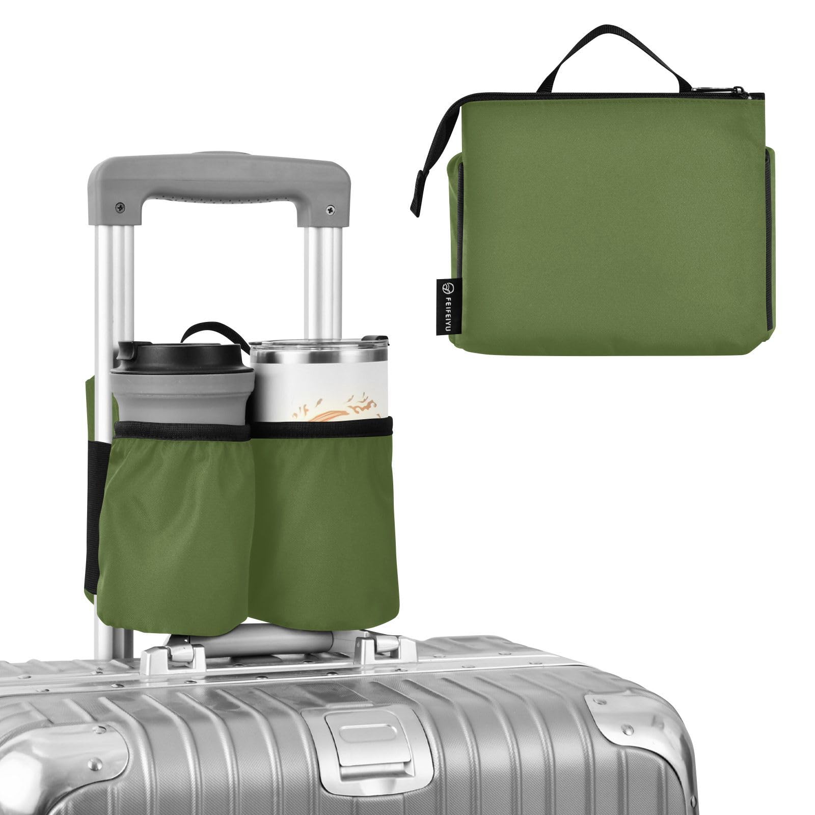 YETTASBIN Olive Green Solid Color Universal Luggage Travel Cup Holder, Free Hand Drinks Carrier Portable Travel Storage Bag for Most Suitcase Handles,