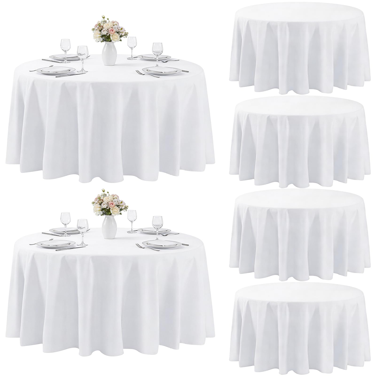 MRJ 6 Pack White Table Cloth 70 Inch Round Polyester Tablecloth Fabric Washable Table Cover for Wedding Dining Outdoor