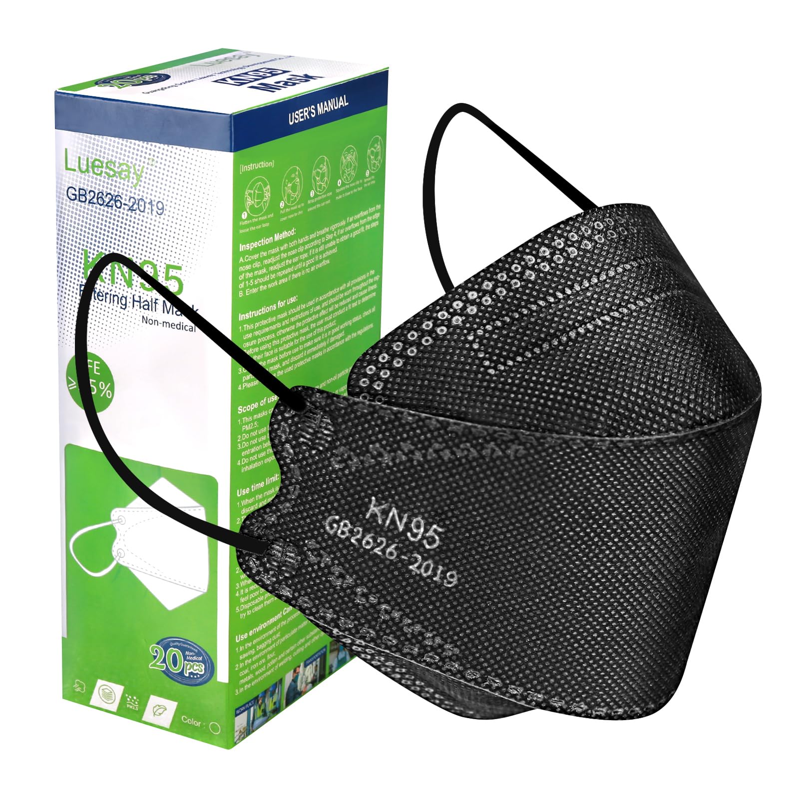 Luesay kn95 Face Masks 20 Pack, Breathable Comfortable and Disposable KN95 Mask, Black