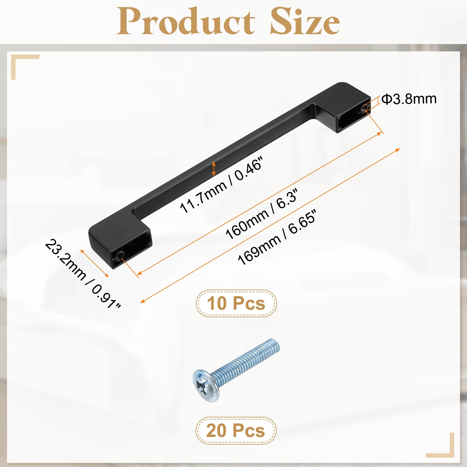 Description: Material: These cabinet handles are made of aluminum alloy with fine workmanship, smooth surface, and a comfortable grip without scratching your hands. The material is sturdy, can withstand daily use, and is not prone to wear and tear.