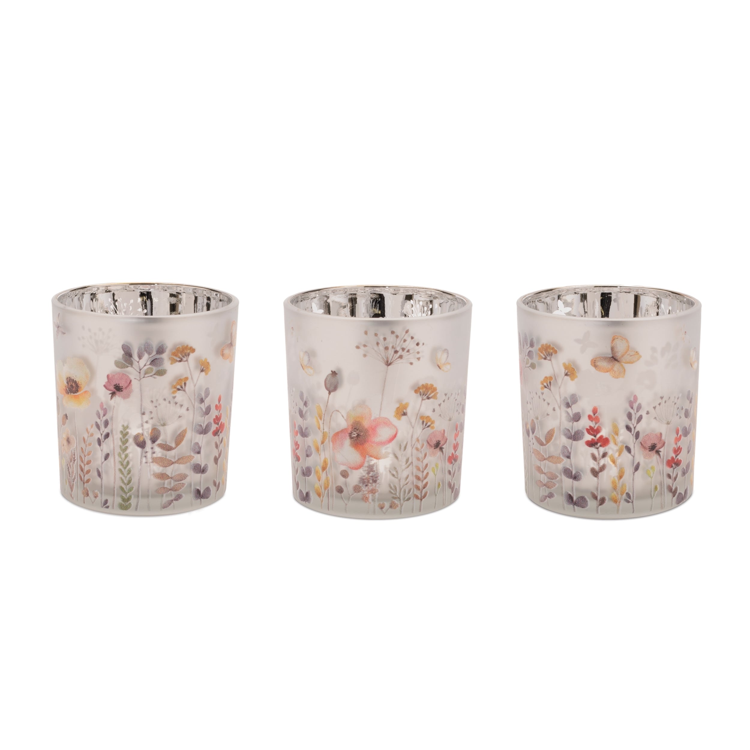 Frosted Wildflower Print Votive Holder (Set of 3)