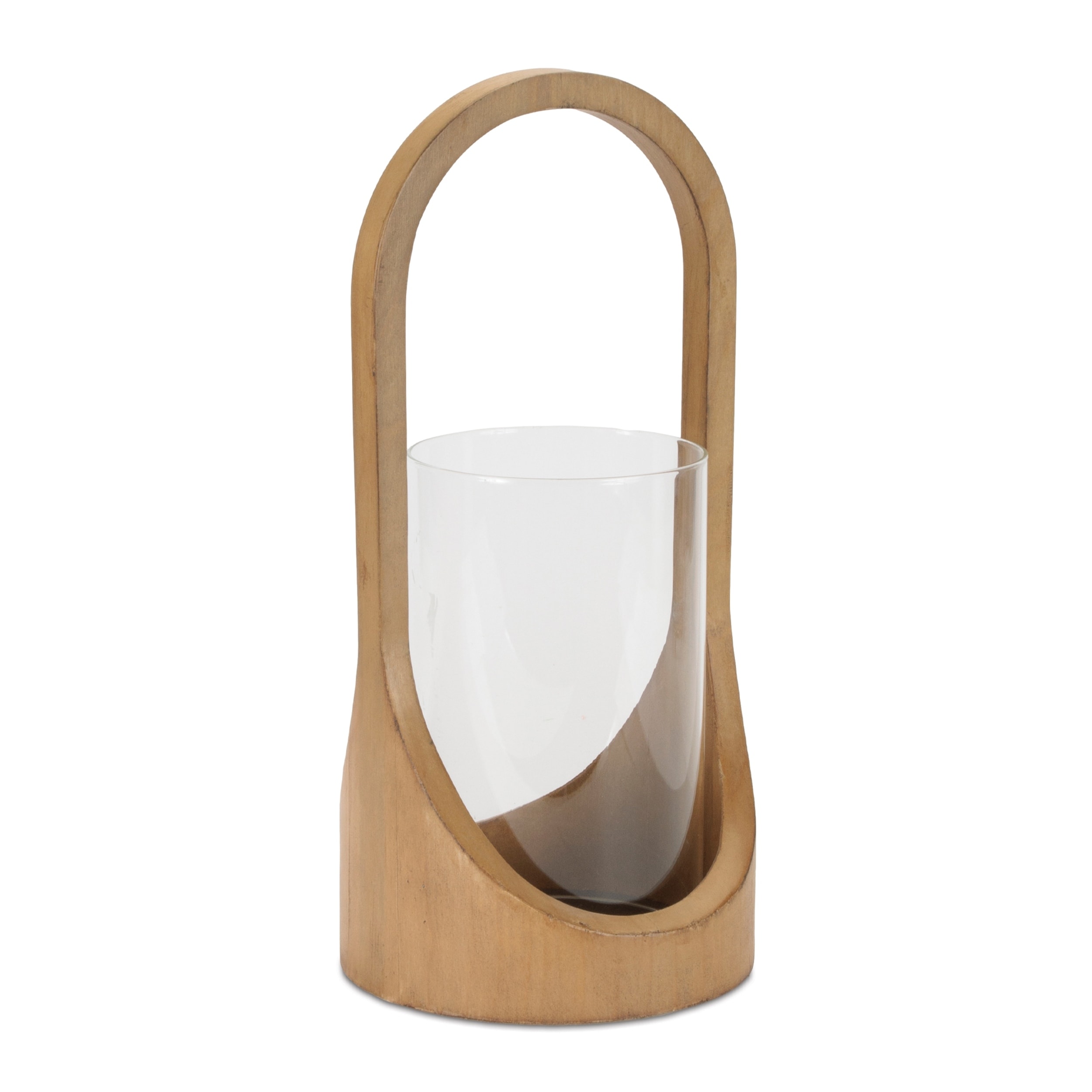 Arched Wood Candle Holder with Glass Hurricane 14"H