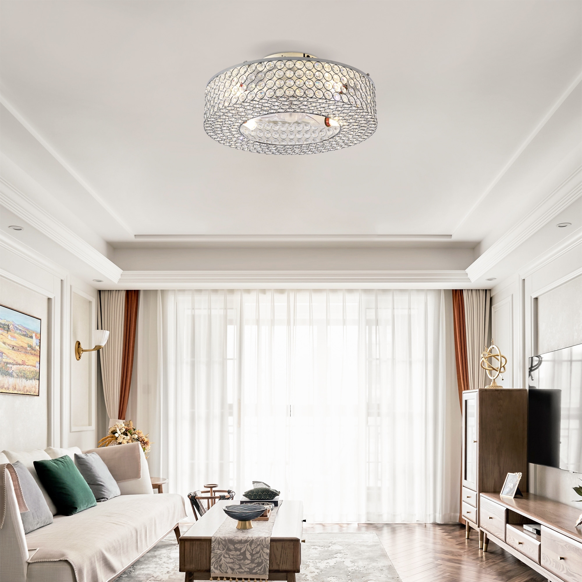 19.6'' Crystal Flush Mount Ceiling Fans with Remote without Bulbs