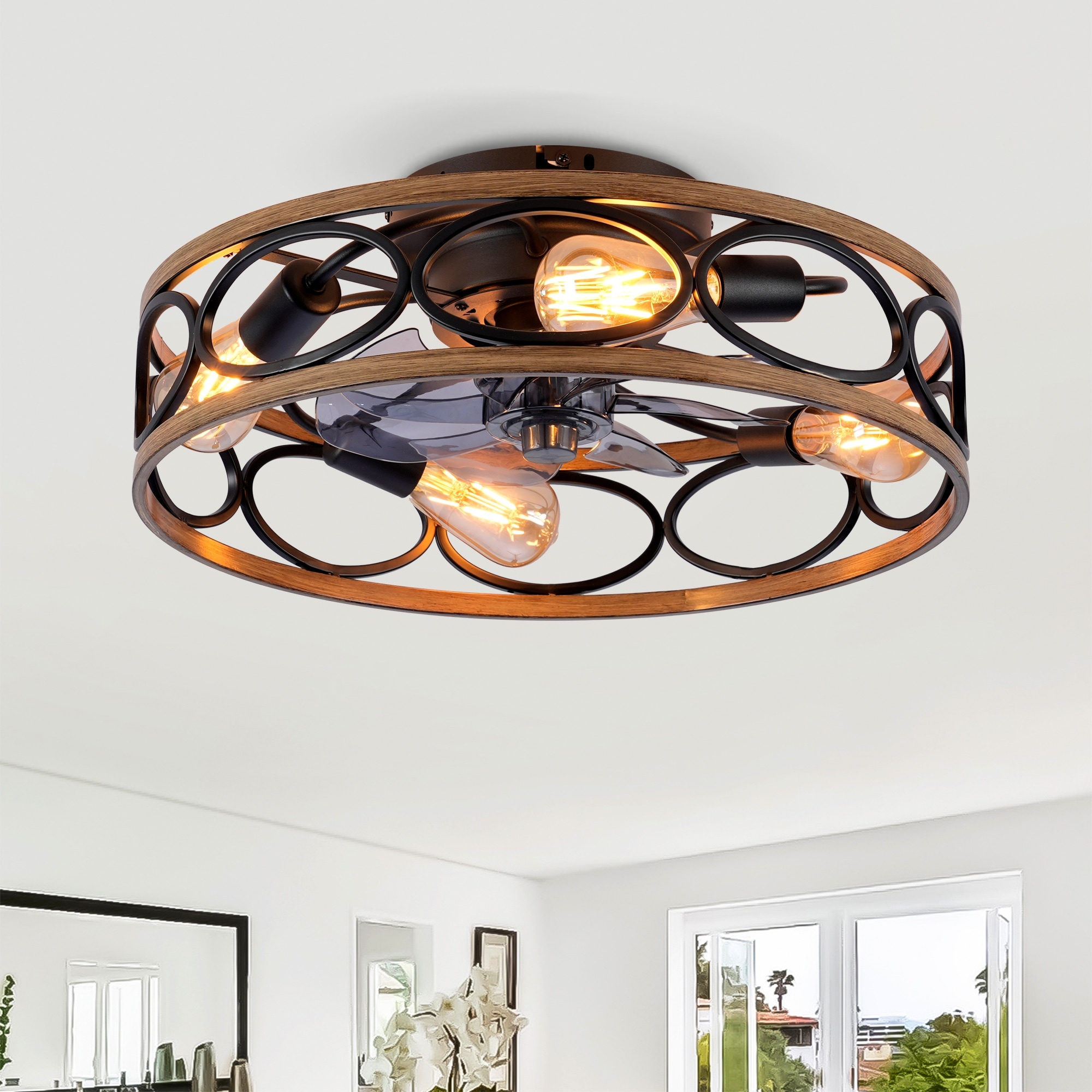 Feature: Small Caged Ceiling Fan Remote Control: Enjoy seamless control with 6-speed adjustment, forward and reversible functionality, and convenient timing settings.Flush Mount Design: Ideal for rooms with low ceilings, this 20-inch caged black ceiling…