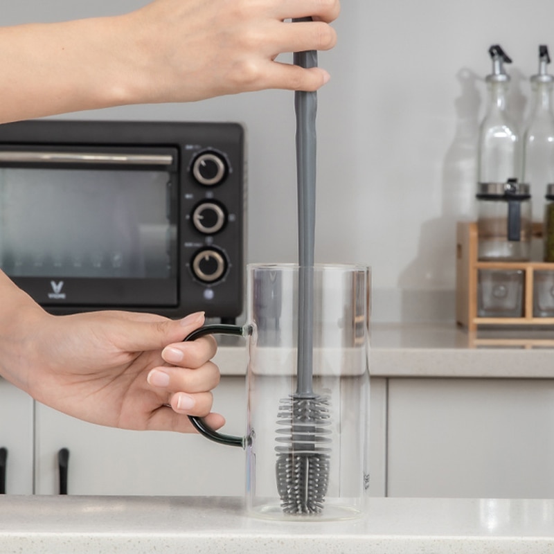 Long Handle Silicone Bottle Brush, Kitchen Cleaning Cup Brush, Thermos Glass Cleaning Brush, Bottle Cleaning Tools grey