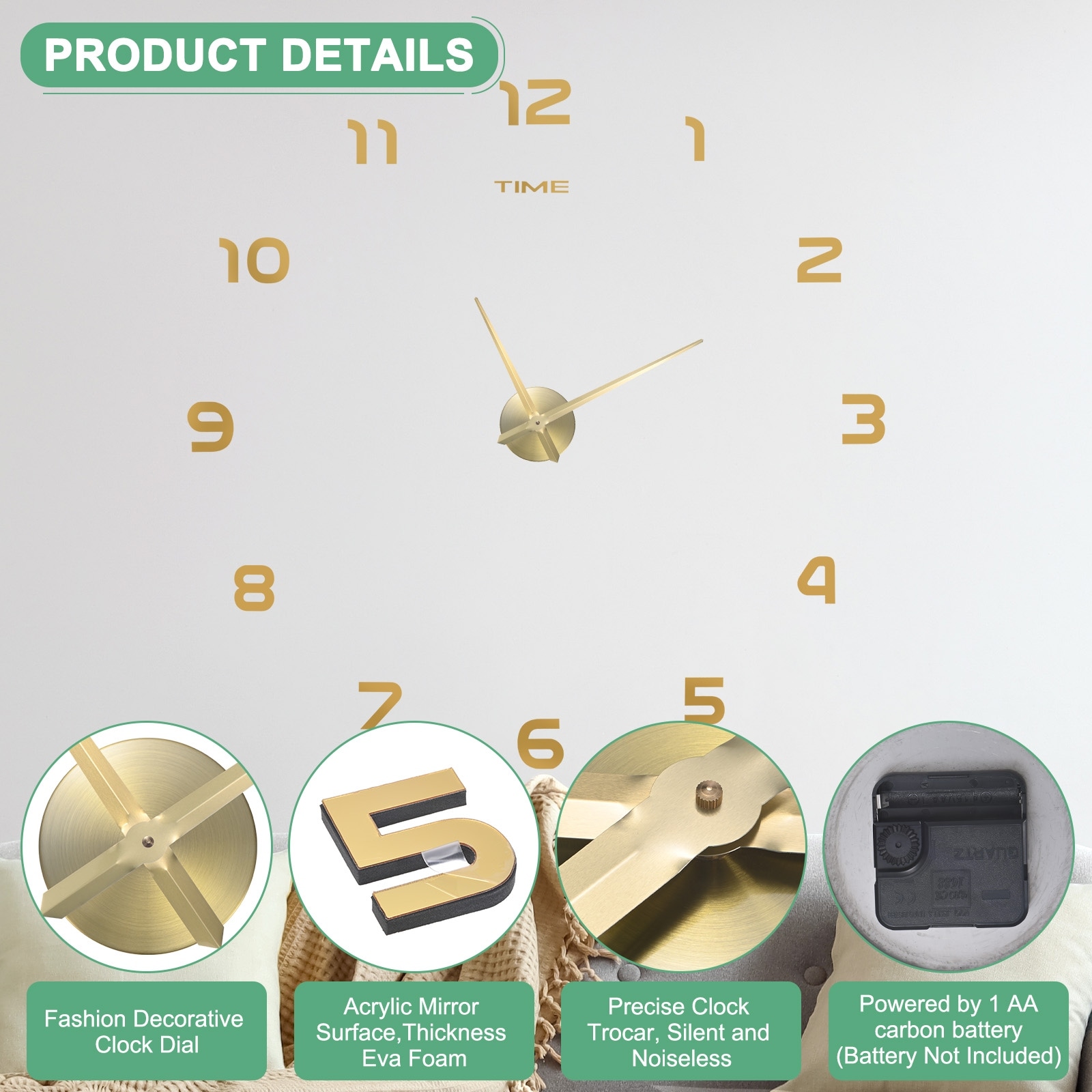 Visible Numbers: Large, clear digits and a glass front provide a crisp view. Modern style eases reading with dial and numbers. Quiet Operation: Noiseless sweep movement ensures peaceful surroundings for sleep or work without annoying ticking sounds.