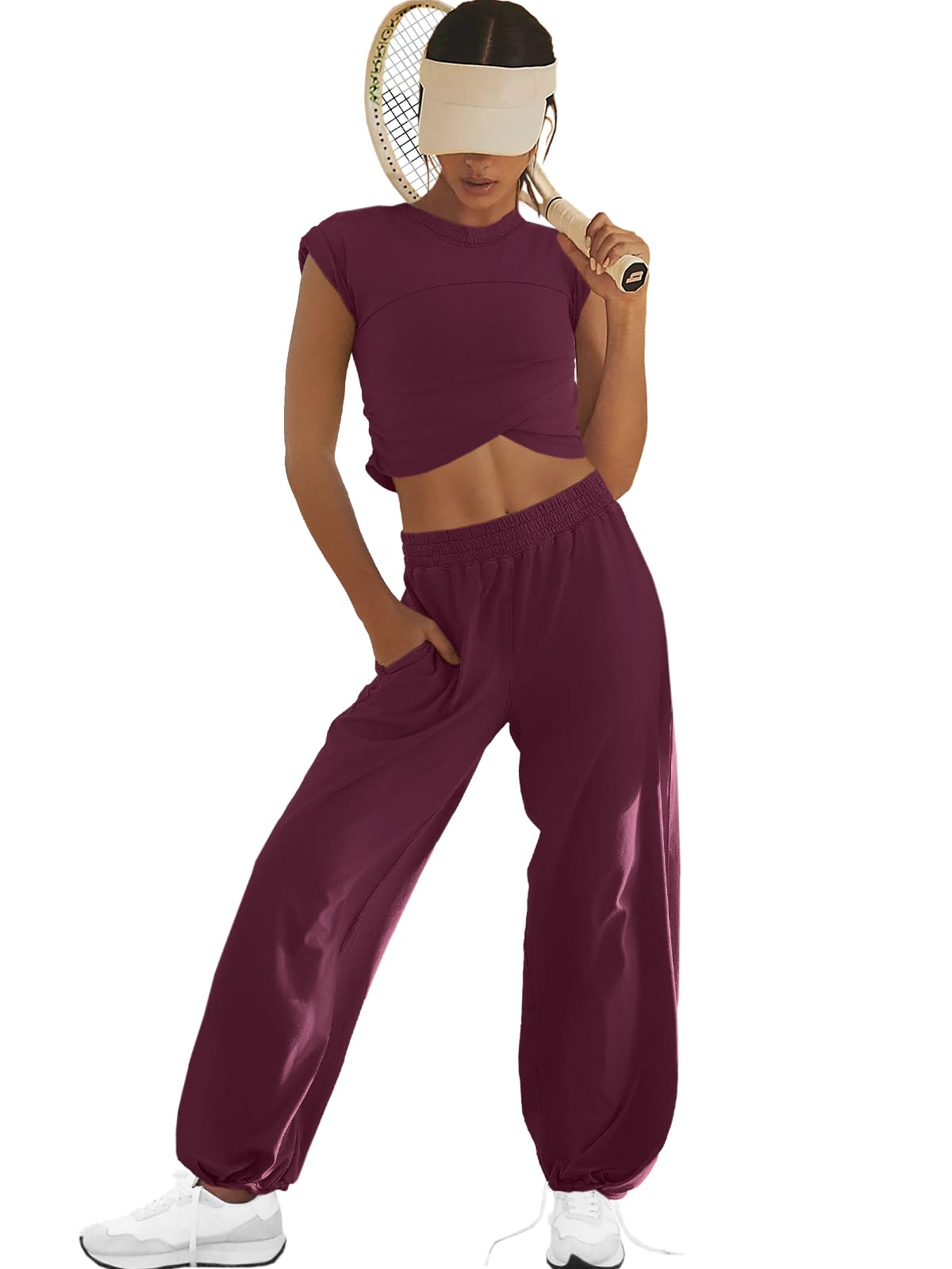 LOUNGE SETS-The workout sets for women has a cropped muscle tee shirt with crossover and seam details at the top. The tee of lounge sets for women are perfect for showing off your curves. Two piece sets for women featuring a super soft fabrication MATCHING SET-The pant of 2 piece sets for women with