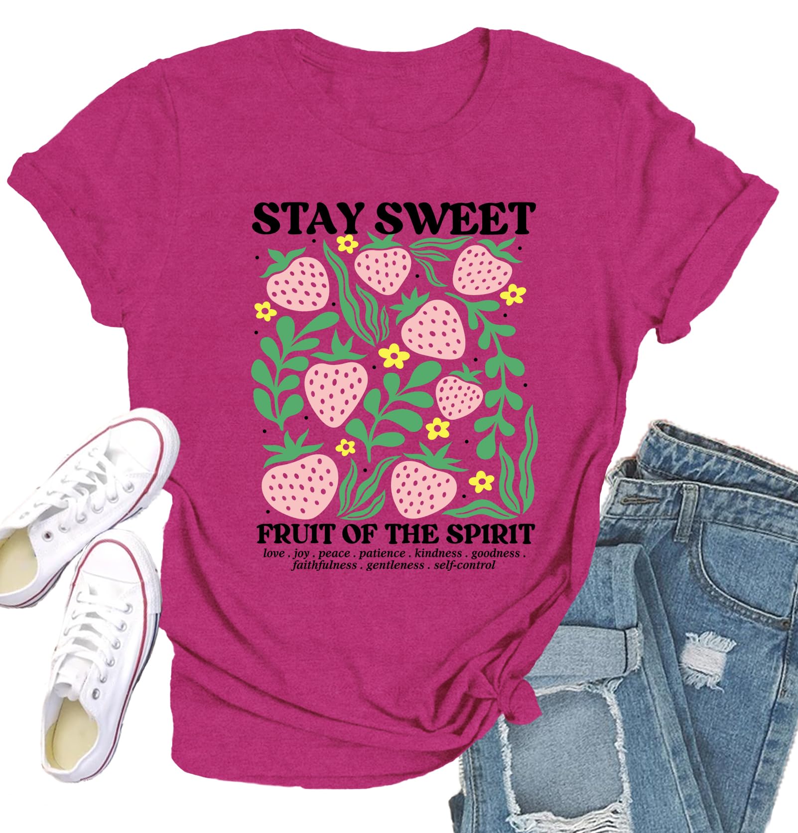 Premium Fabric Blend: Crafted from a premium blend of 60% Polyester, 35% Rayon, and 5% Spandex, this strawberry christian shirt guarantees a soft, breathable, and ultra-comfortable fit for everyday wear Stylish Design: A fusion of fashion and spirituality, this womens strawberry shirts is perfect fo