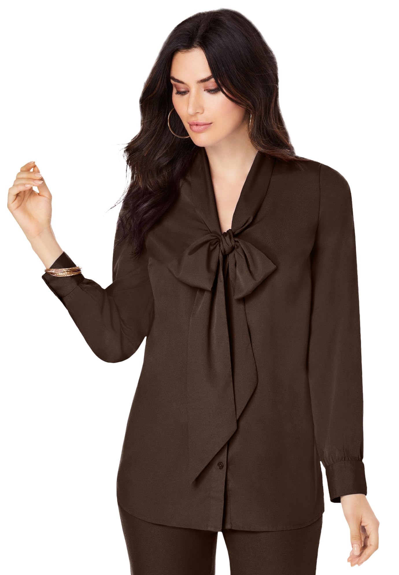 Roaman's Women's Plus Size Long Sleeve Bow Blouse