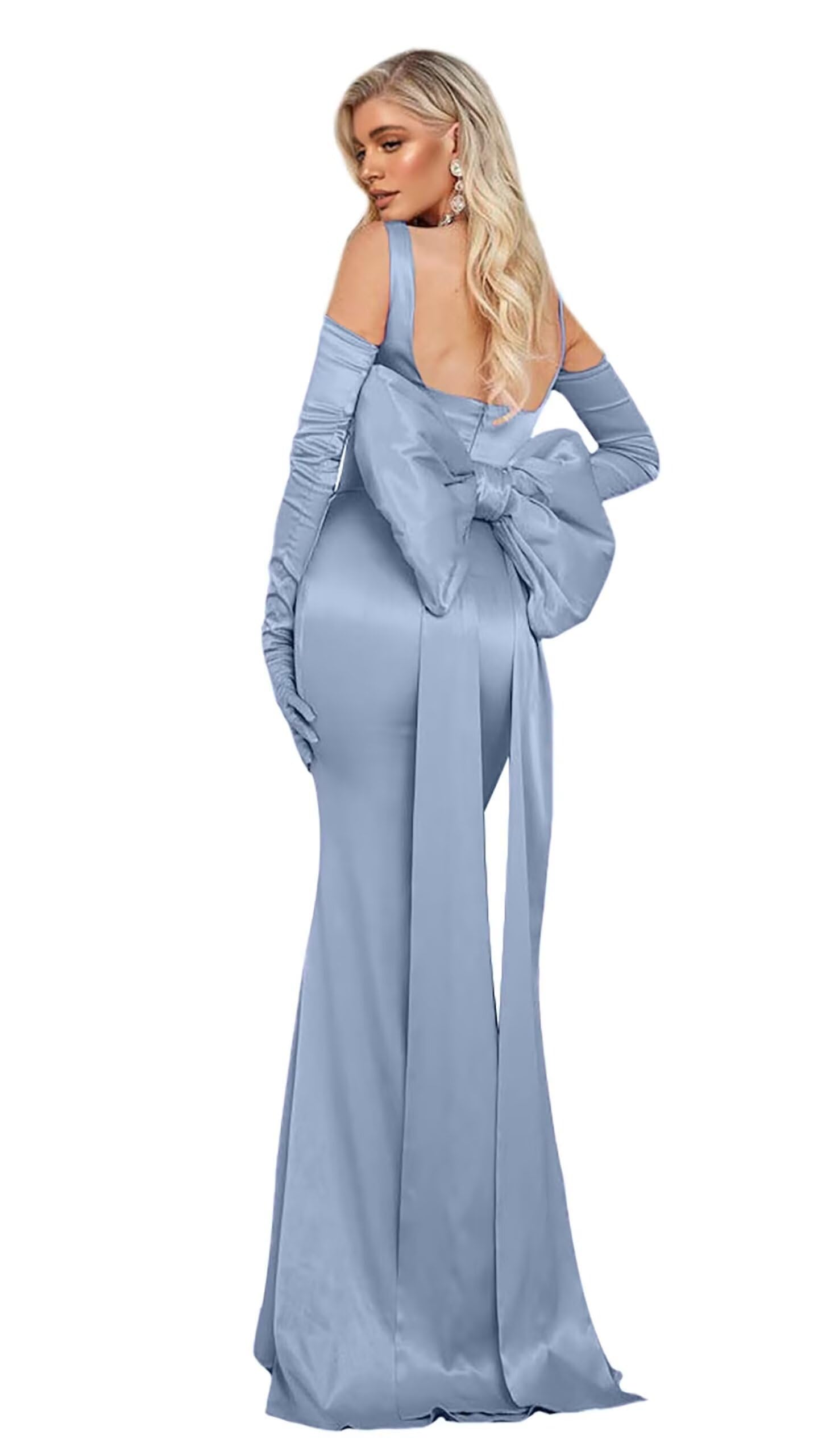 Title: SHANDUAO Sleeveless Satin Bridesmaid Dress Mermaid Long Cocktail Gown with Bow Square Neck Formal Dresses with Gloves 2025 Dusty Blue-6. Product Type: Clothing, Shoes & Jewelry > Departments > Women > Clothing > Dresses > Formal