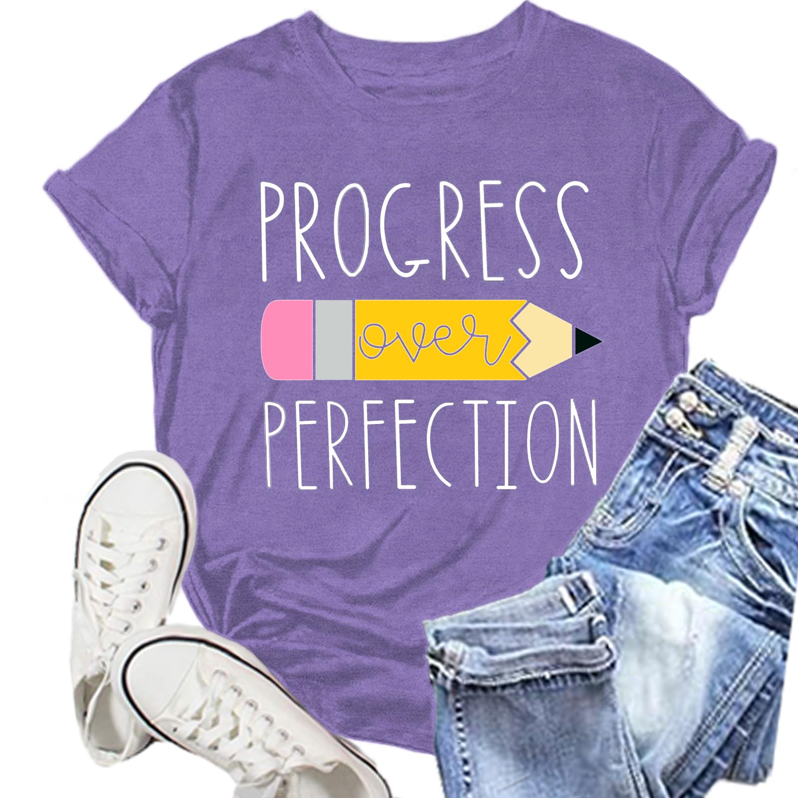 NEWKA Teacher Shirt for Women Teach Teaching Tshirt Progress Over Perfection Teacher Tee Top