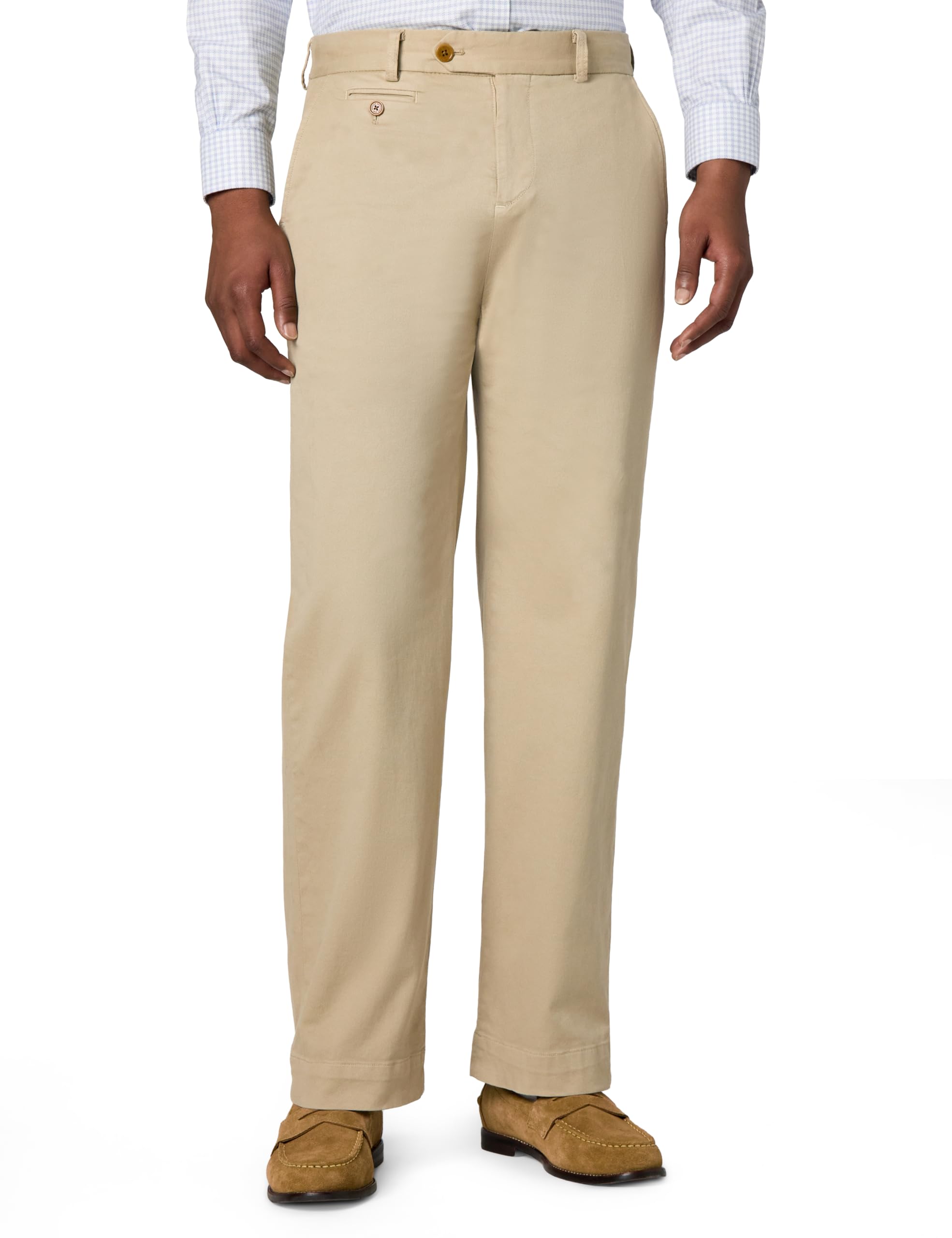 Inspired by our classic chinos from the Brooks Brothers archives, these are made from cotton twill with a touch of stretch for added comfort, garment-dyed for rich, lived-in color Fitted through the hip with a wider leg opening, these pants feature a double welt coin pocket, quarter top pockets and