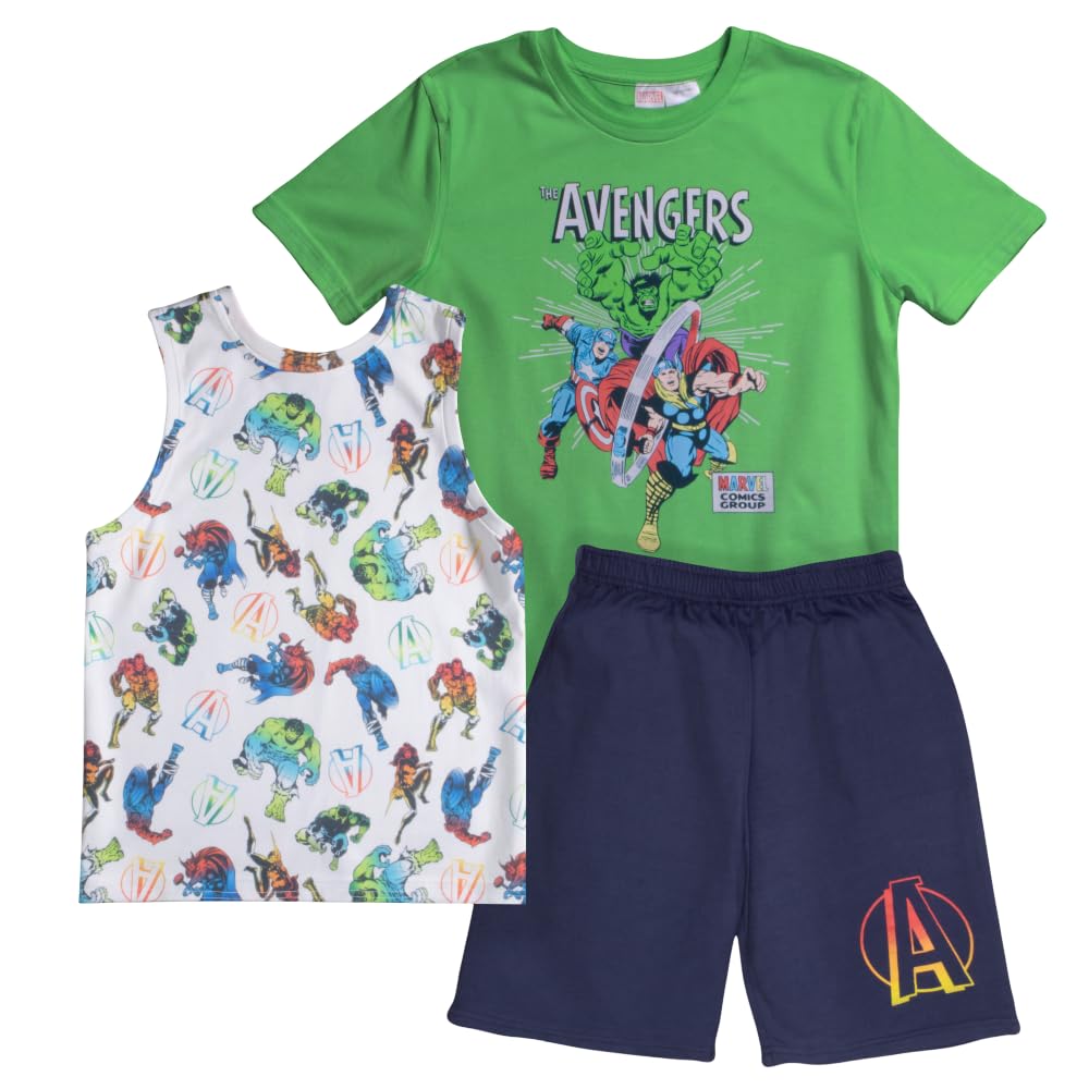 Avengers Assemble: This Marvel Comics Avengers Boys 3-Piece Clothing Set includes a short sleeve shirt, tank top, and shorts, creating a variety of casual and comfortable outfit options, featuring vibrant graphics print of your favorite Marvel superheroes Quality Material: Made with high-quality pol