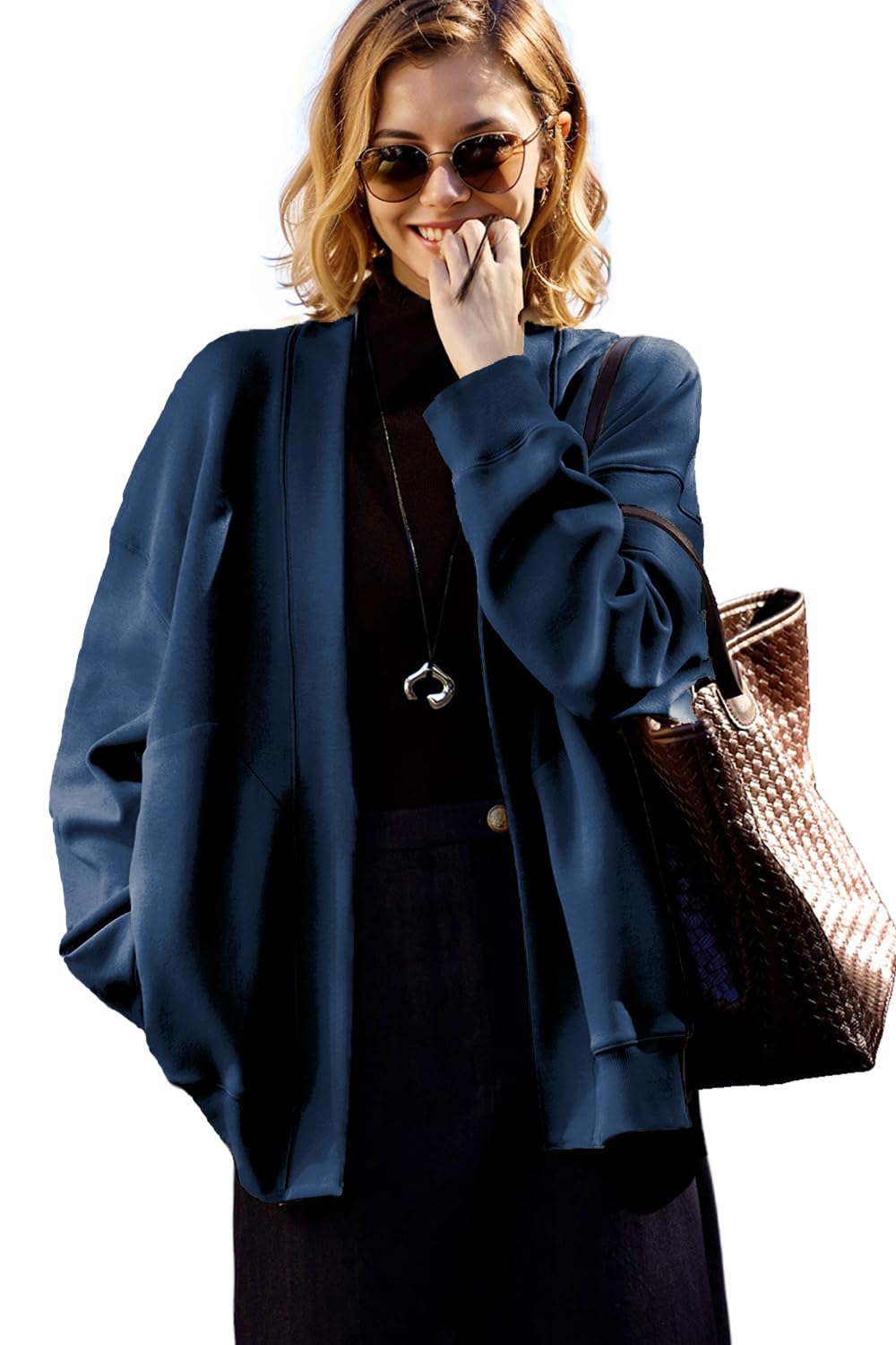 Fashion Oversized Womens athletic Sweatshirt blazer Pockets Sweaters no Zip Up jacket Lightweight Open Front Cardigan