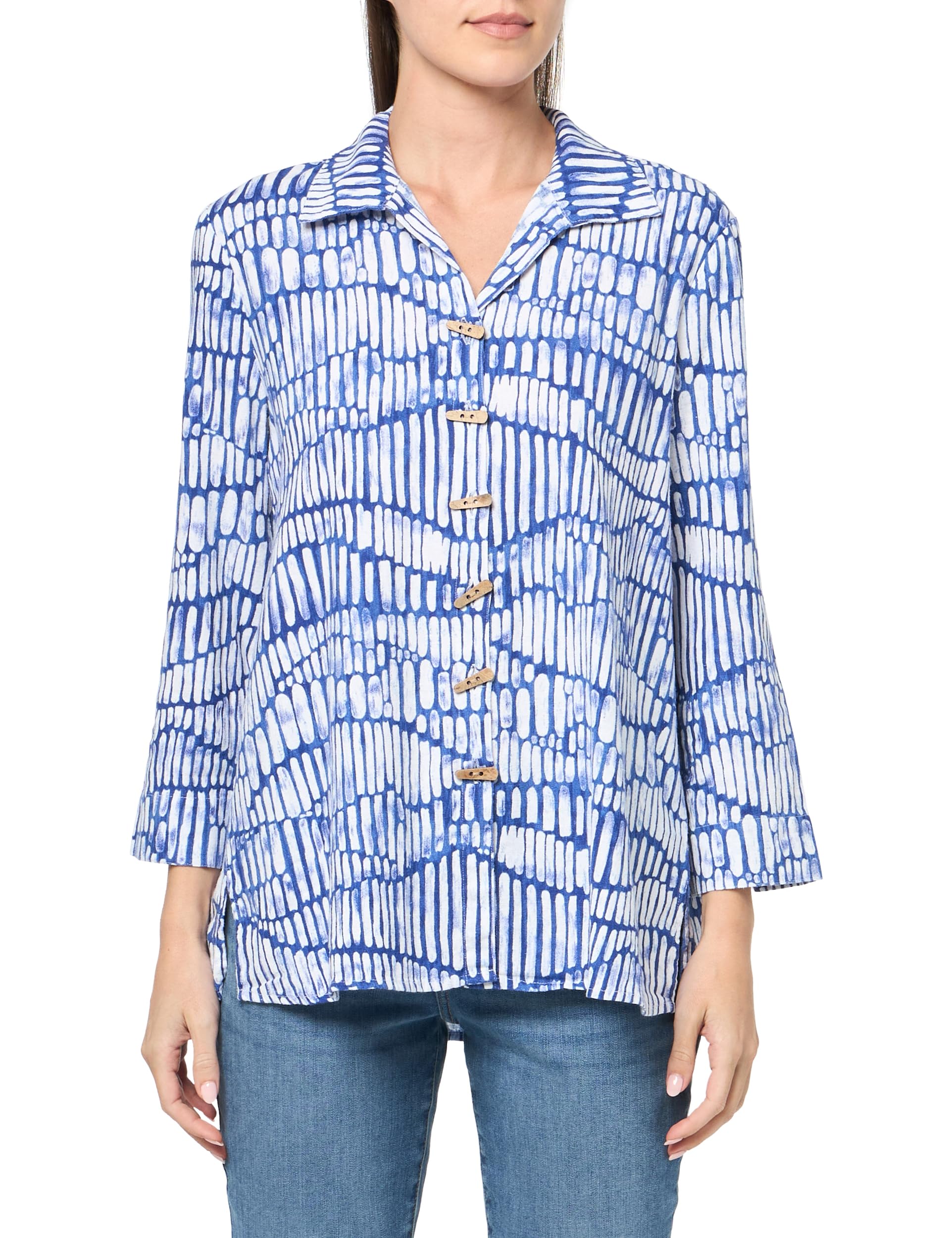 Ali Miles Women's Printed Button Front Tunic Three Quarters Sleeves, White/Blue