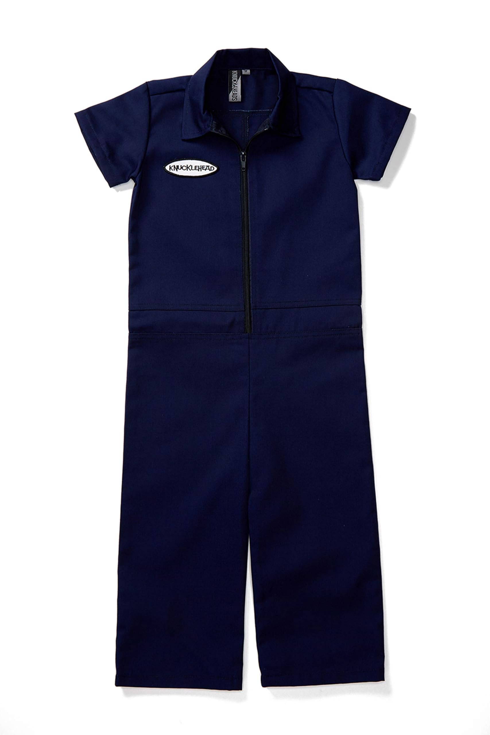 Designed in the USA / Imported Perfect baby shower gift, photo prop or Halloween costume idea! "Knuckleheads" logo sturdy chest patch and front zip Add a little personality to your kid's closet! Time to get down to some serious monkey business in these cool Knuckleheads Grease Monkey Coveralls. Thic