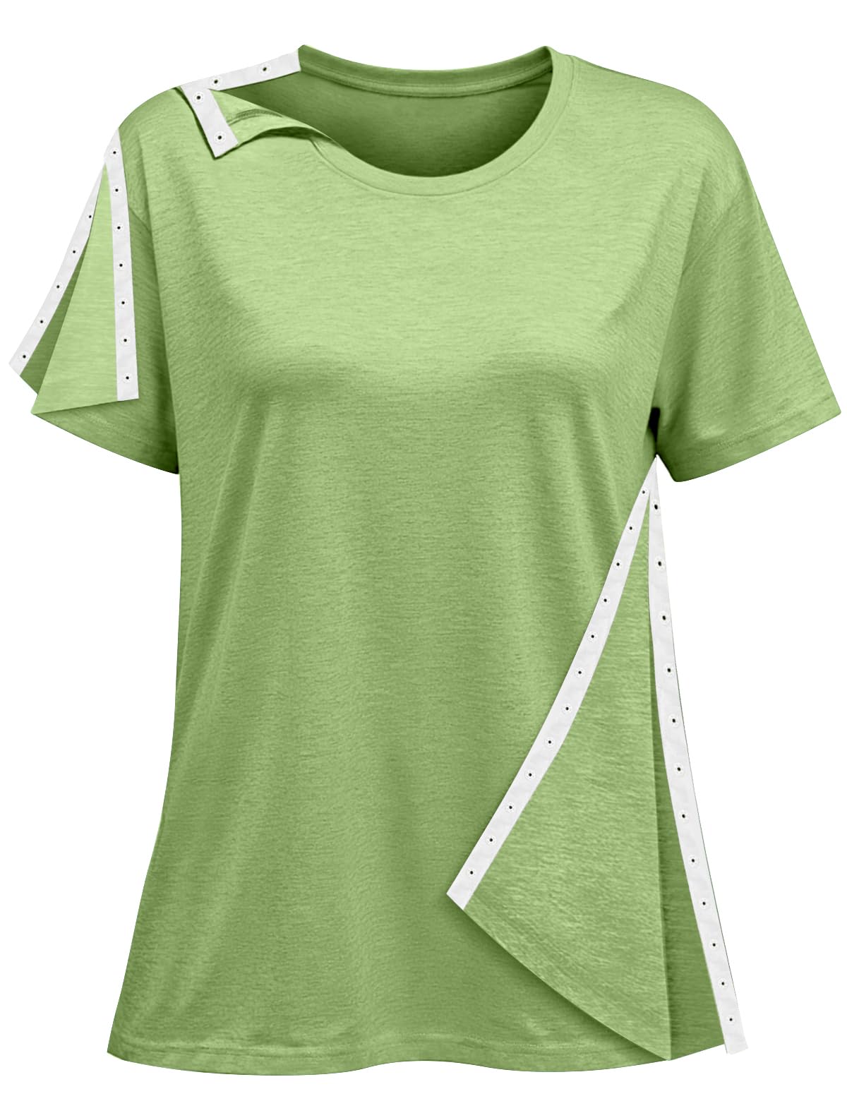 Post Shoulder Surgery Shirts for Women- Short Sleeve-Full Snap-Open Arm Shoulder Recovery Clothing Chemo Clothing