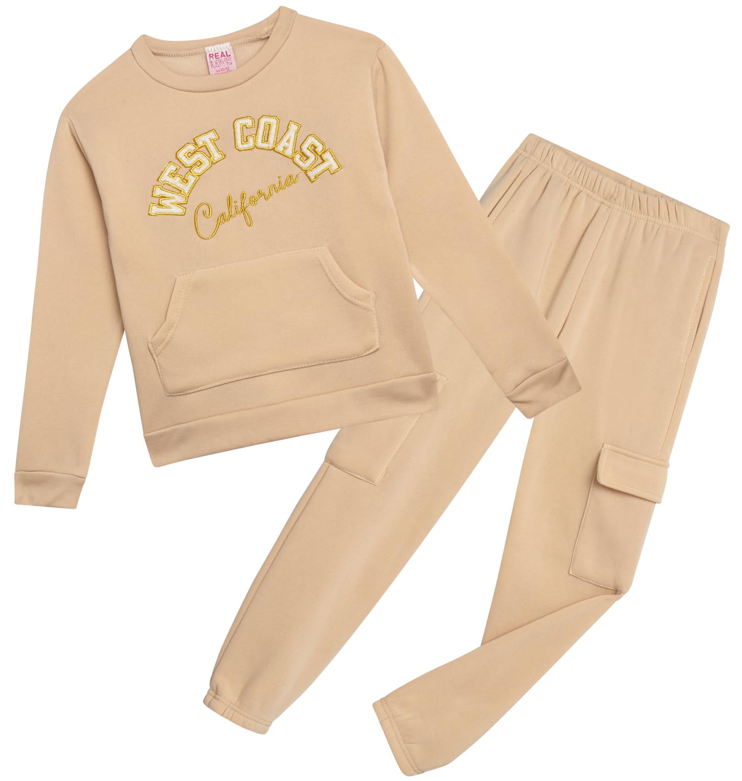 Real Love Girls Sweatsuit - 2 Piece Active Crewneck Soft Fleece Pullover Sweatshirt & Jogger Sweatpants Set (7-12)