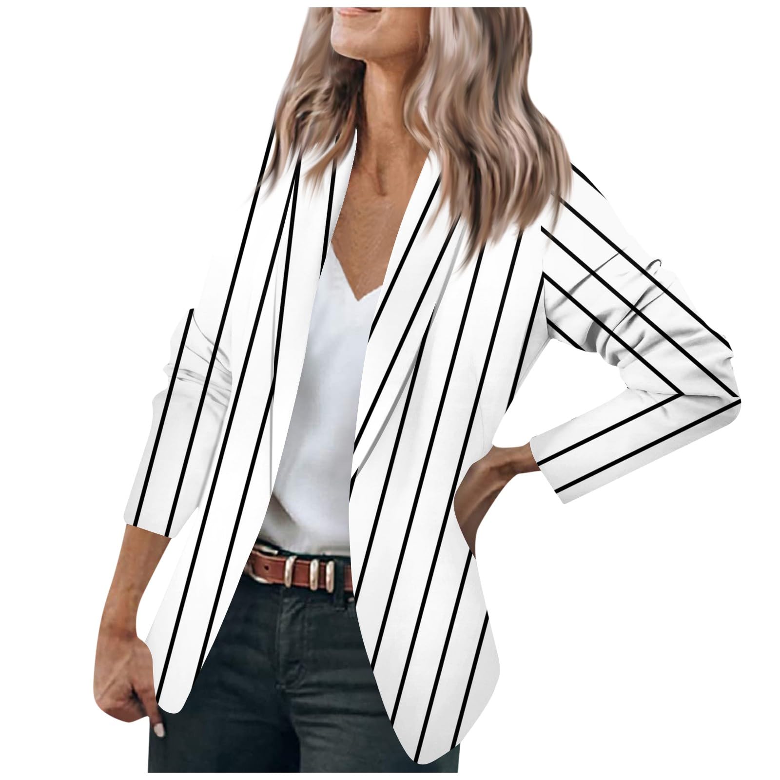 Blazers For Women Business Casual,2024 Fall Trendy Black And White Striped Blazer Lapel Open Front Cardigan Jacket