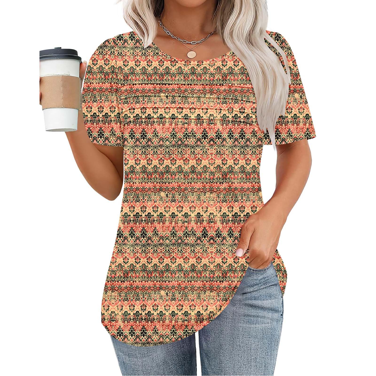 Summer Tops for Women 2025 Trendy Short Sleeve Crewncek Floral Tunic Shirts Casual Spring Plus Size Clothes