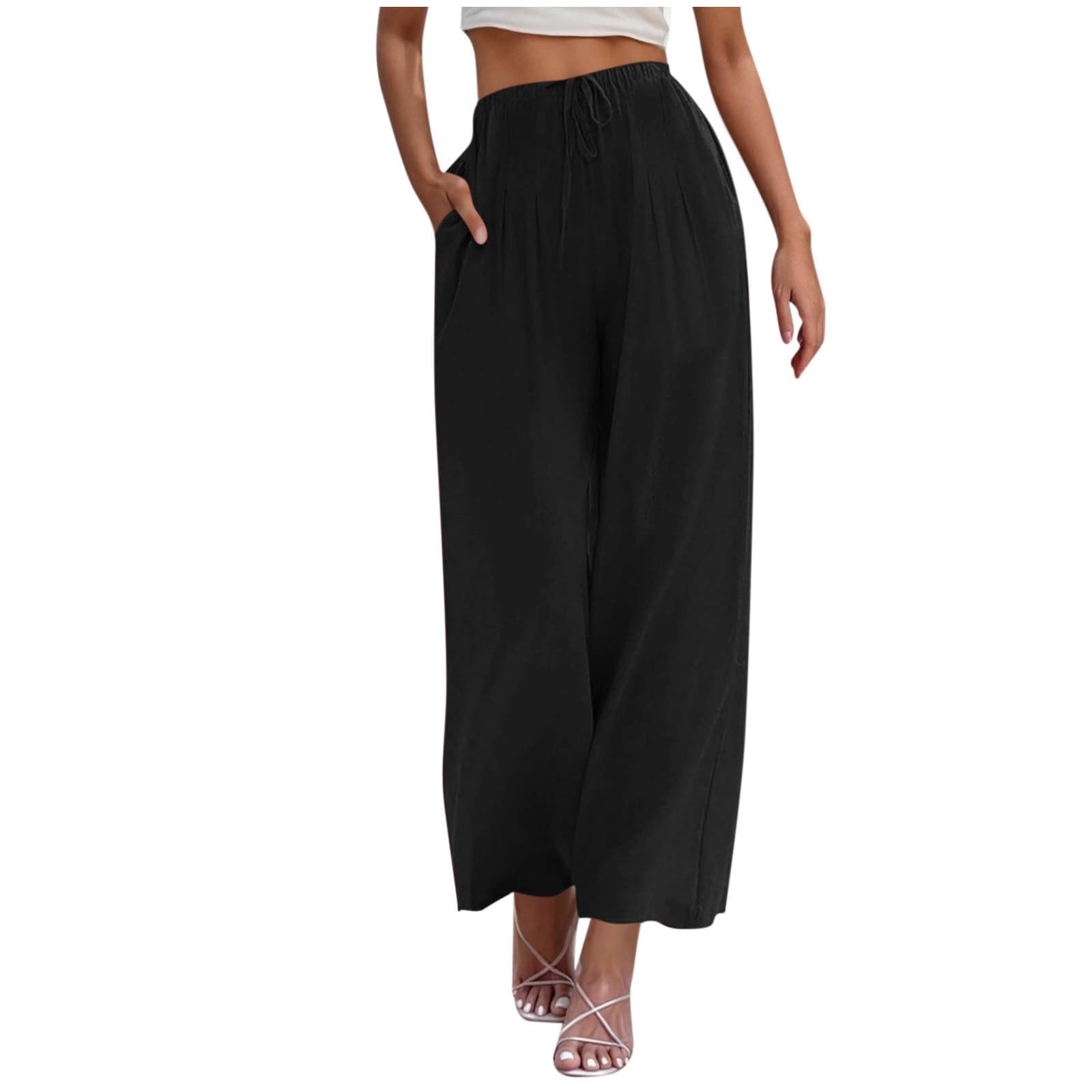 Palazzo Pants for Women High Waisted Straight Wide Leg Linen Trousers Drawstring Elastic Summer Outfits