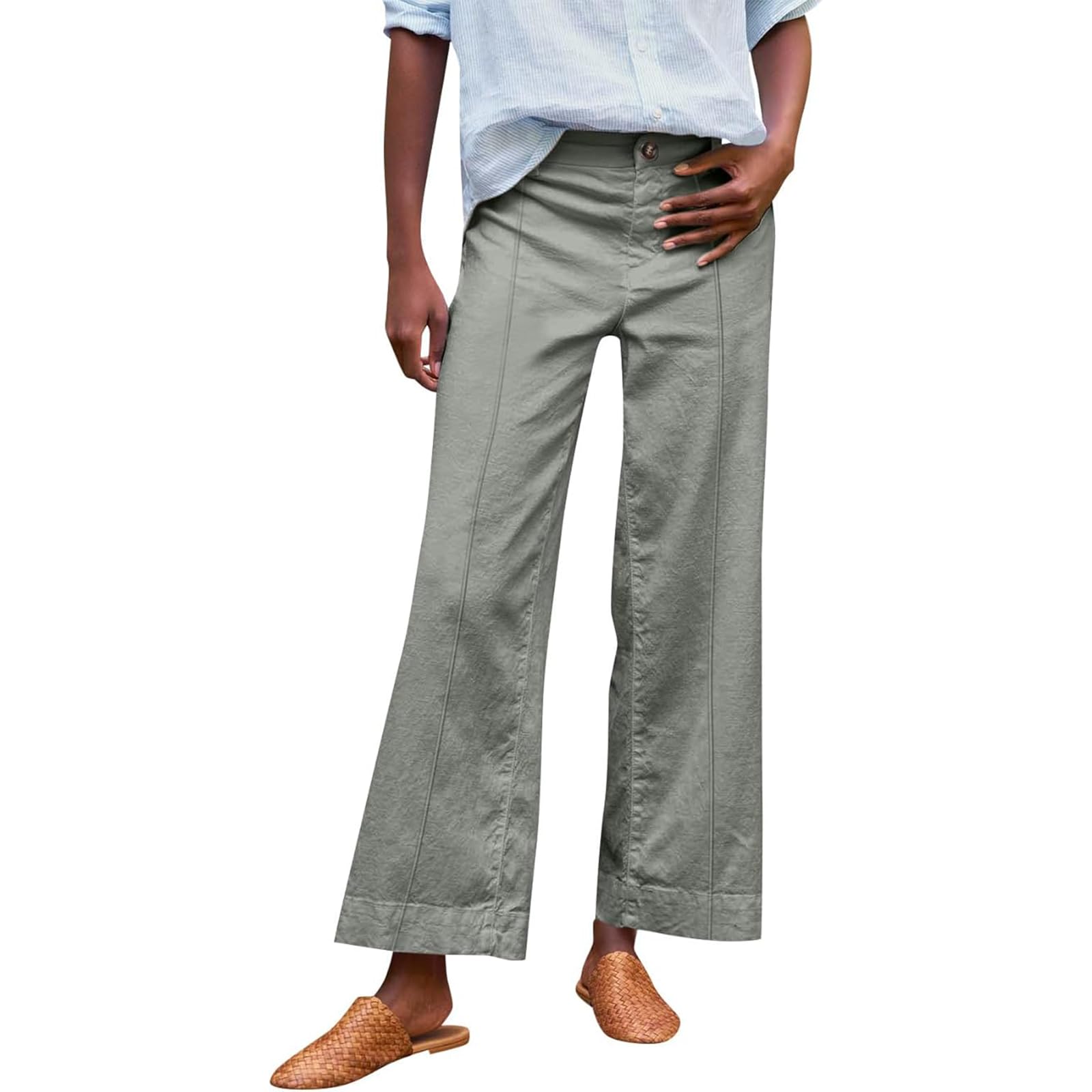 Cropped Linen Pants Women Summer Flare Wide Leg Pants High Waisted Work Pants Business Casual Bootcut Capri Pants